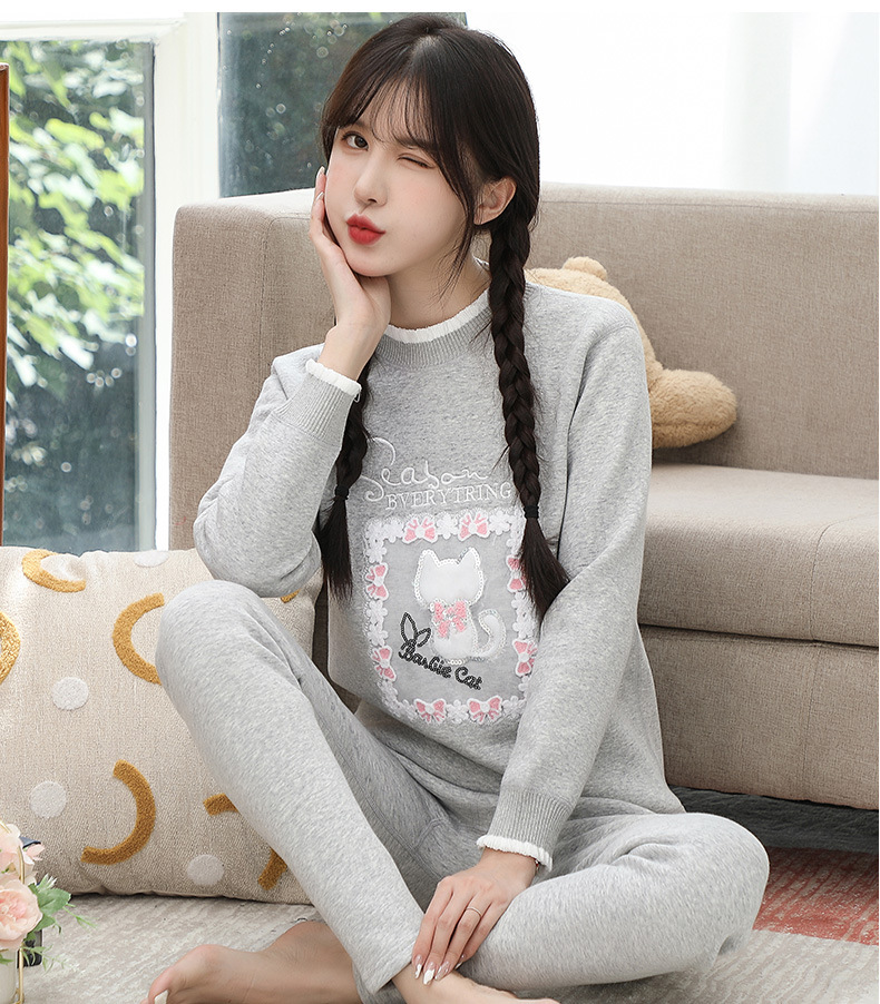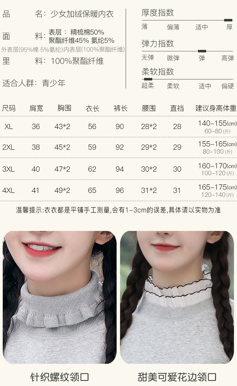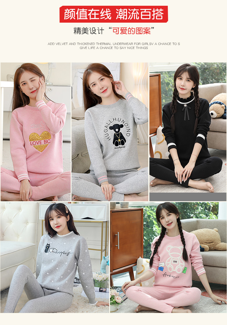 保温下着女子学生は厚いベルベットがかわいい少女高校生の大童秋衣秋ズボン綿セット秋冬