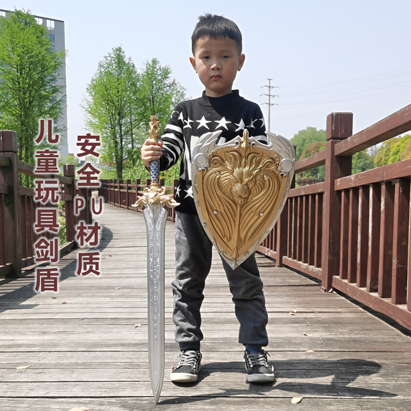 子供のおもちゃの宝剣の盾の男の子の刀剣の武器の上古の神獣の朱雀の剣の盾の柔らかいゴムのシミュレーションの兵器の模型