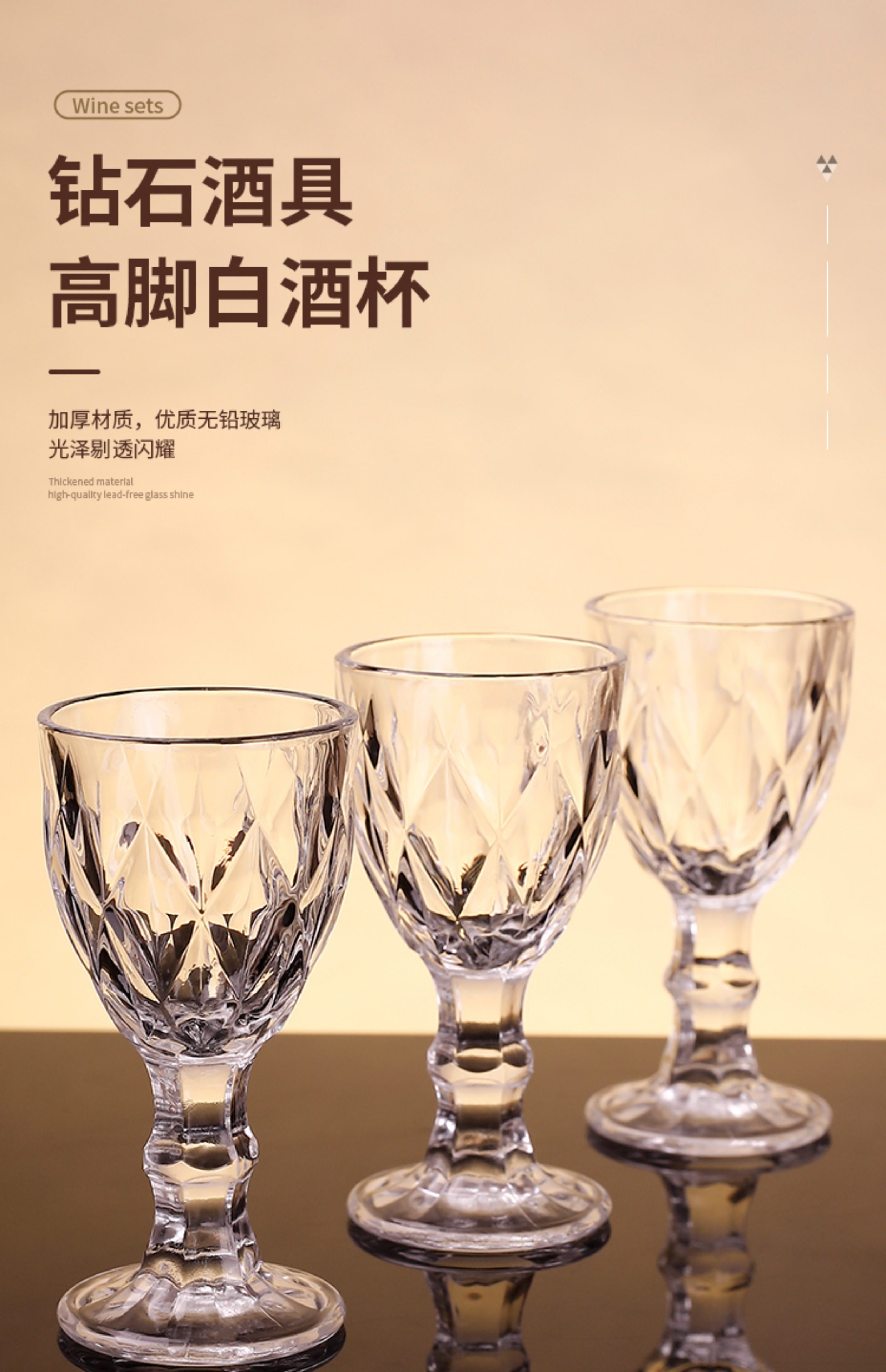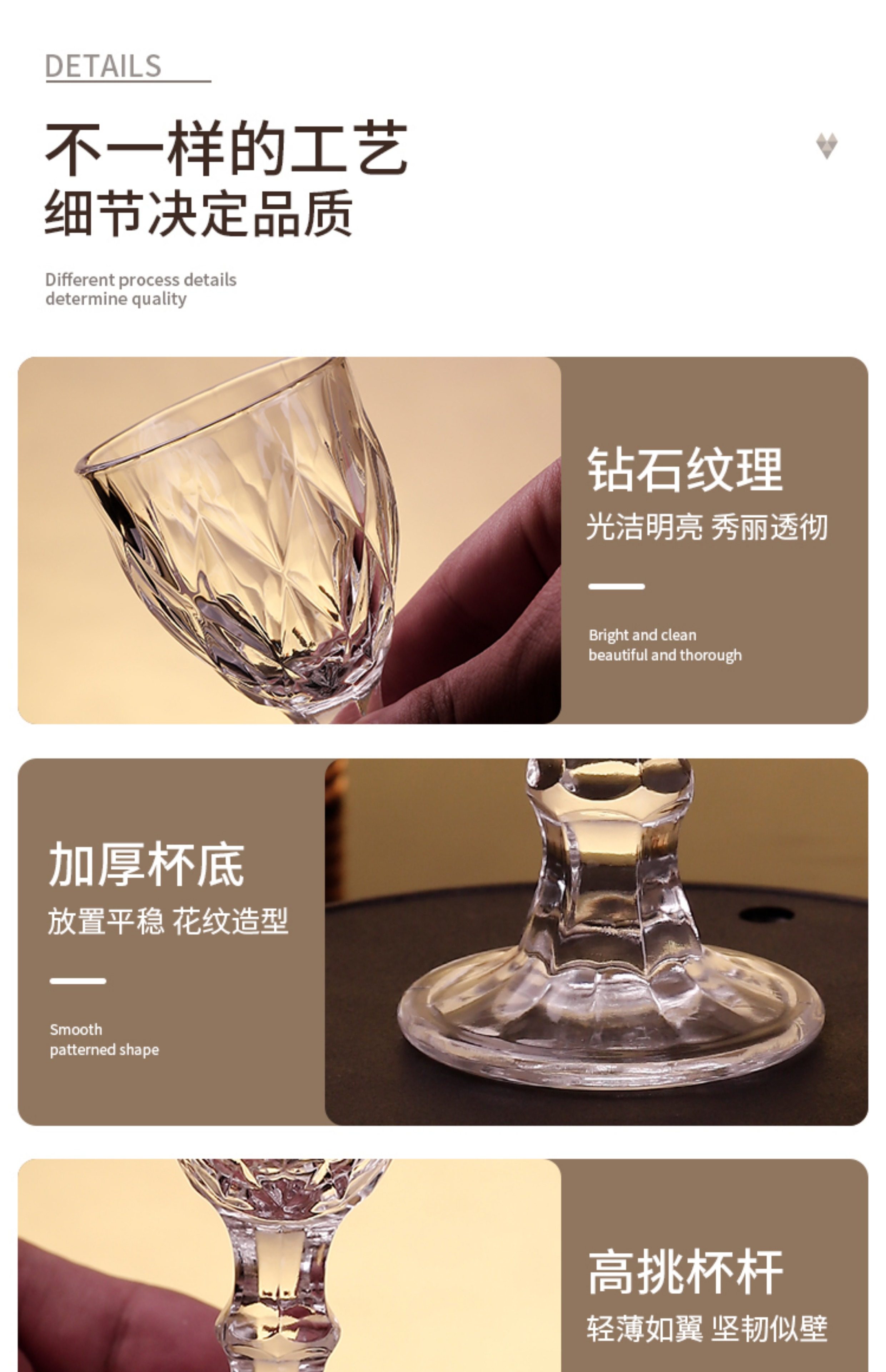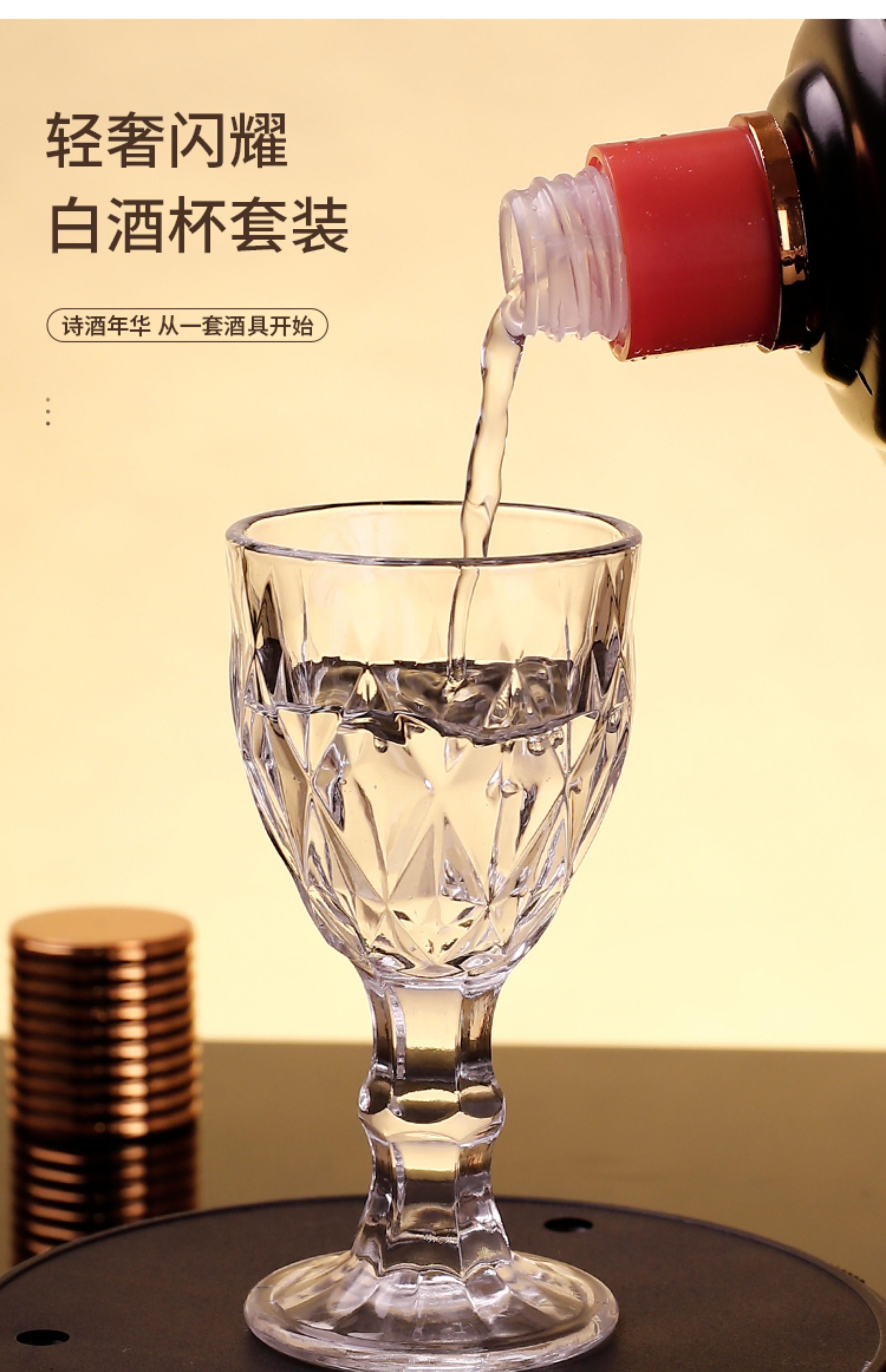 一両白杯家庭用ガラス杯セット洋杯烈杯トランペット一口杯四方杯国潮風