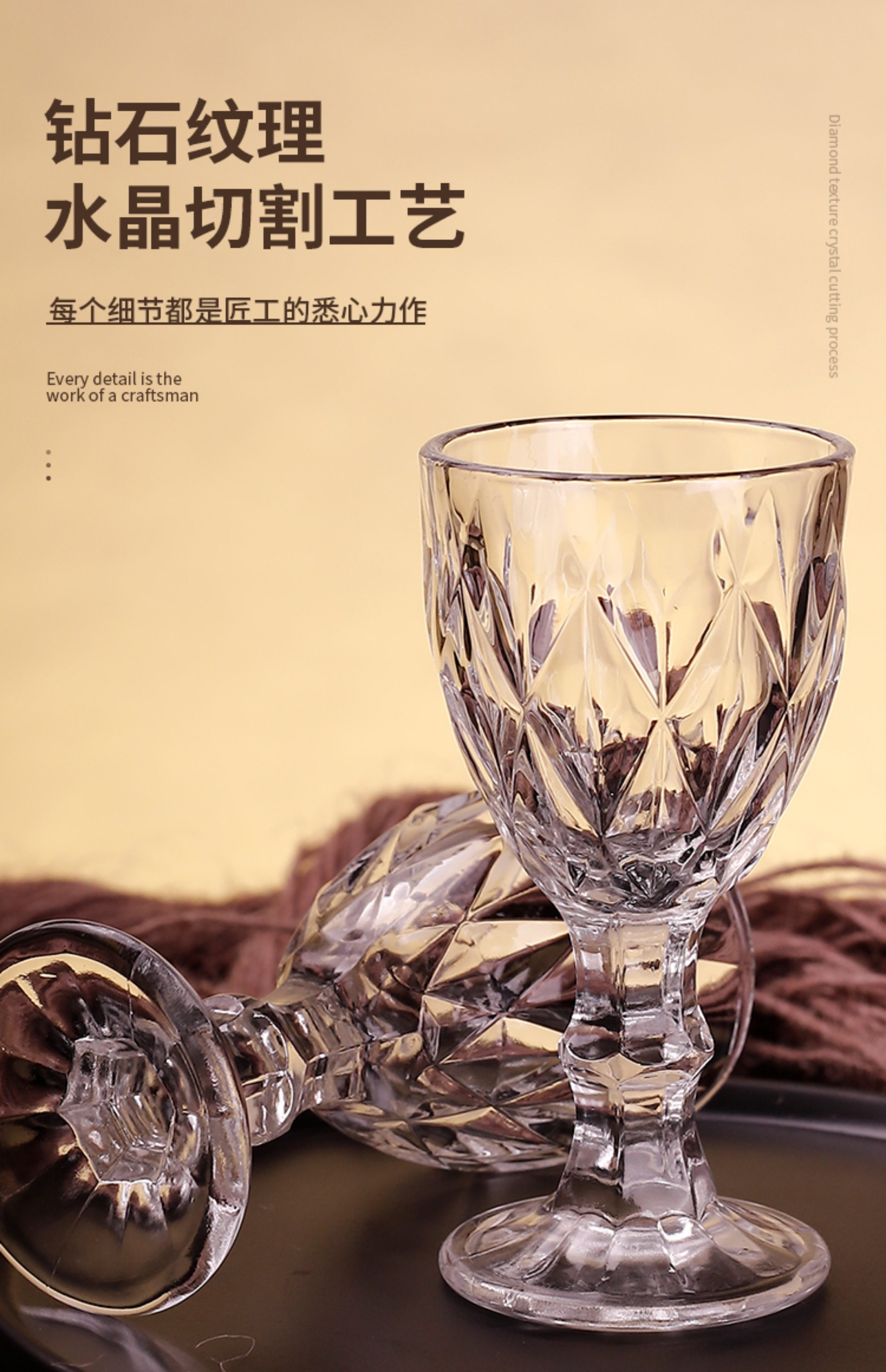 レリーフ高足カップ太陽花カップフランス風復古風ガラスコーヒーカップ飲料ジュースカップシャンパンカップワイングラス