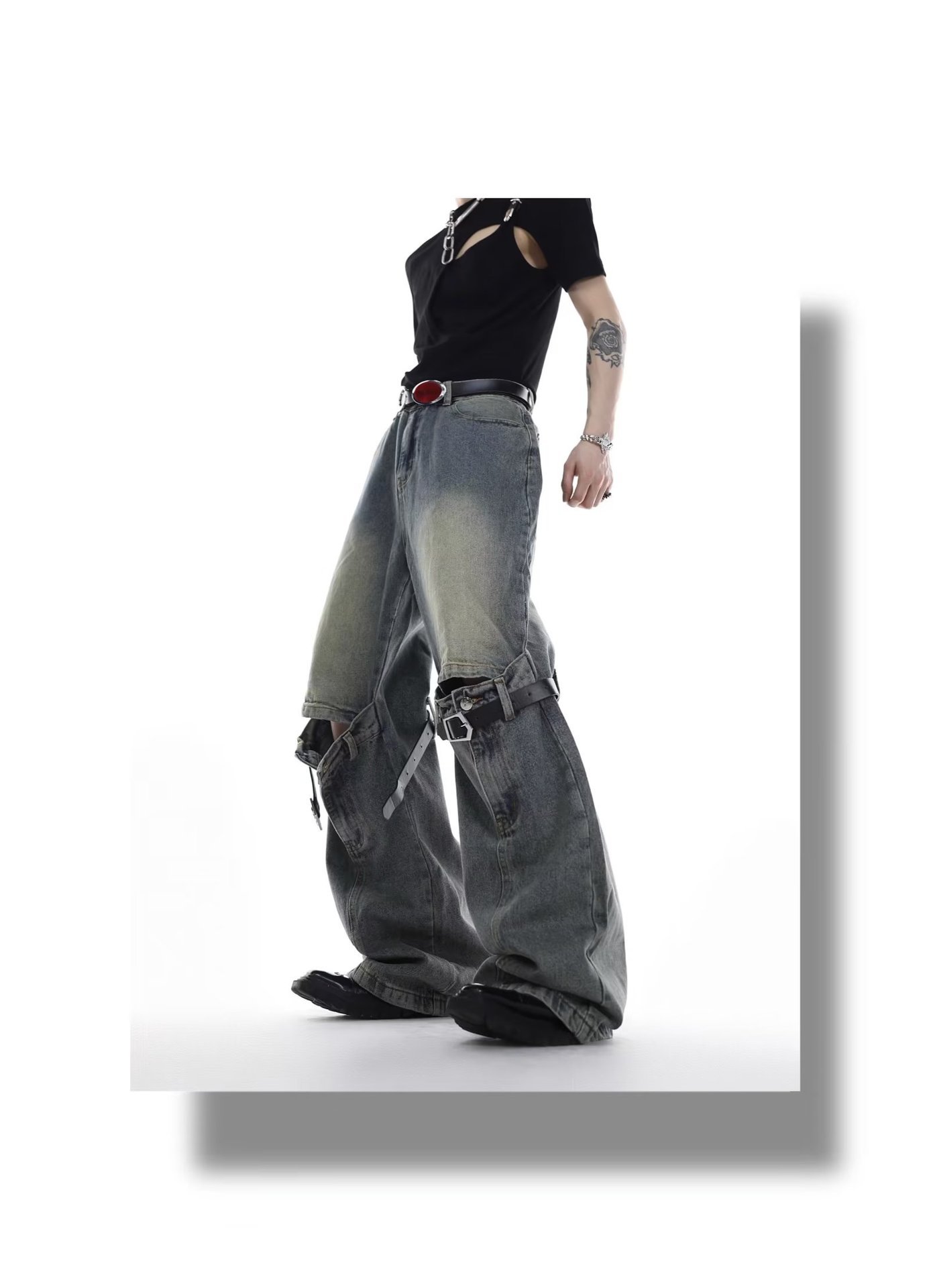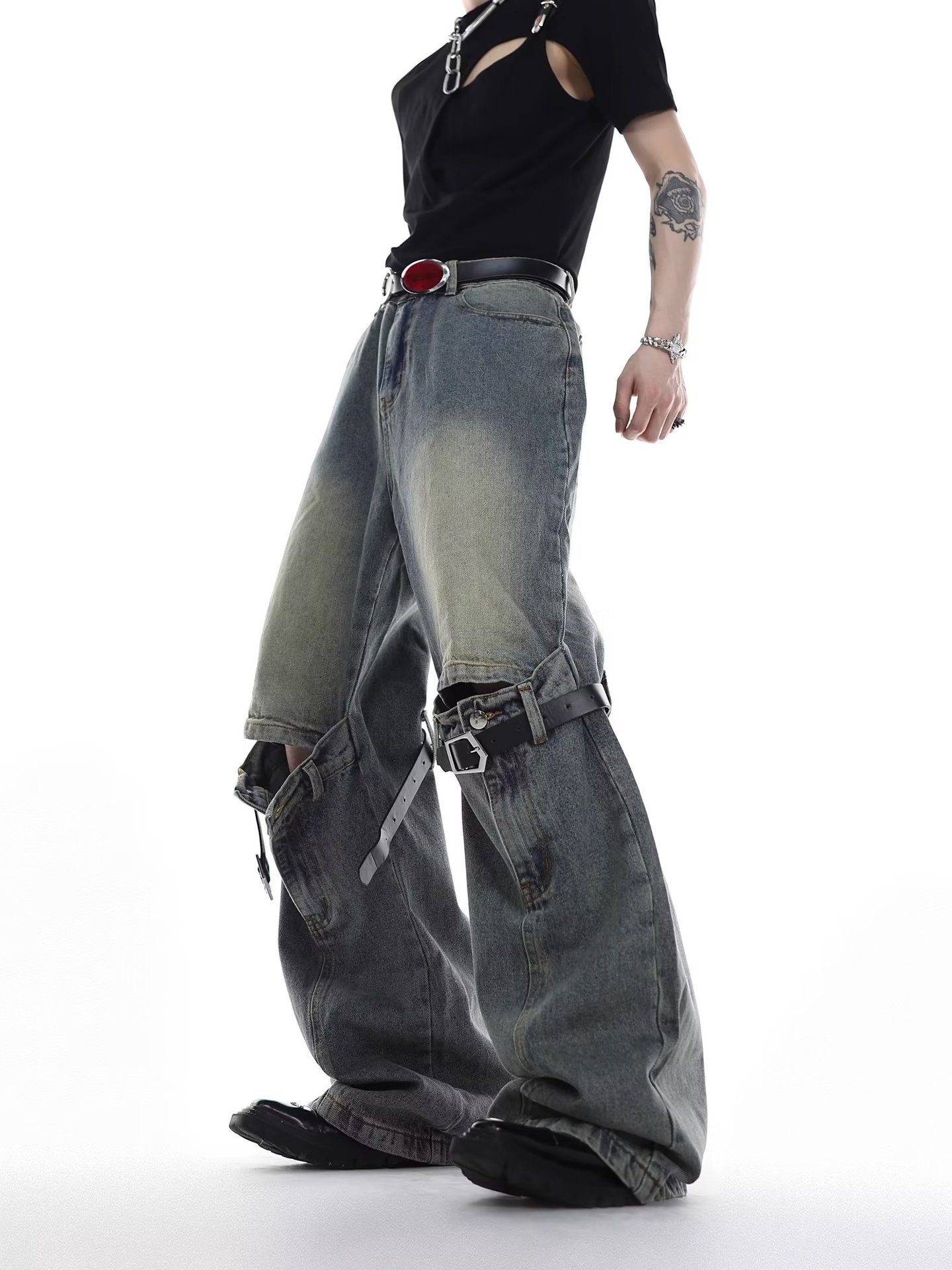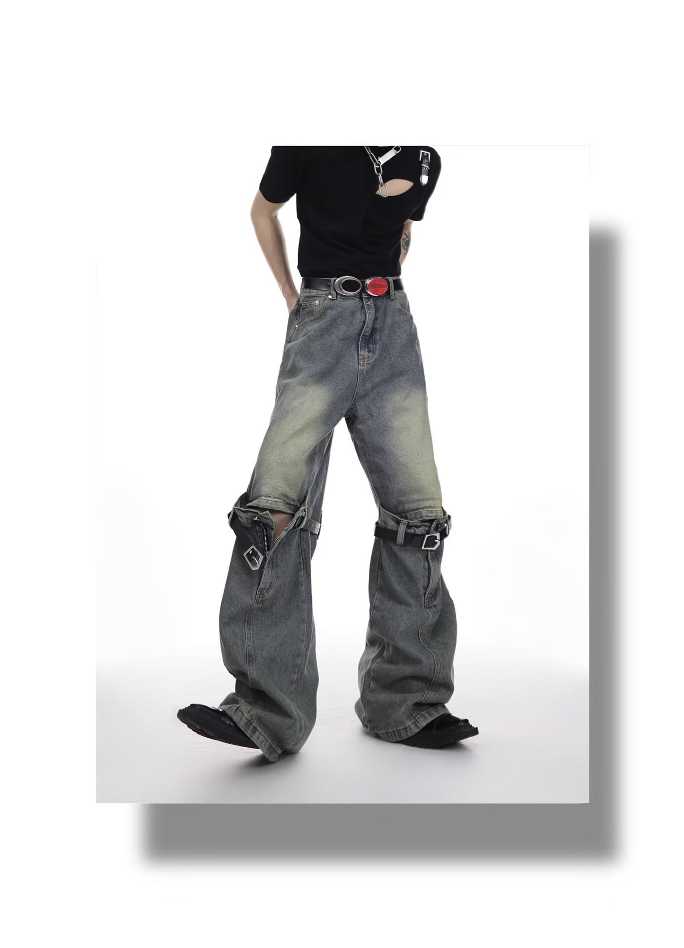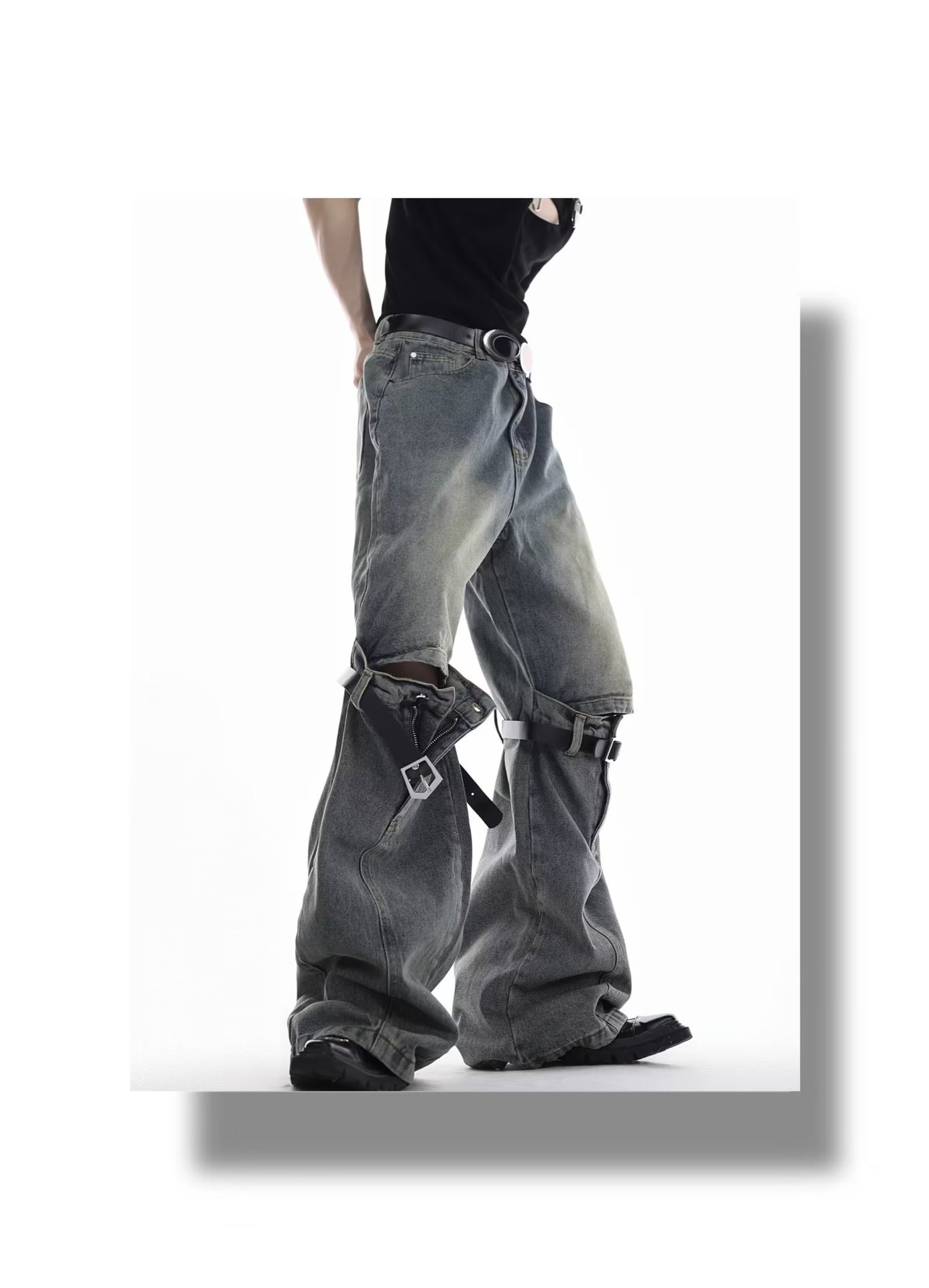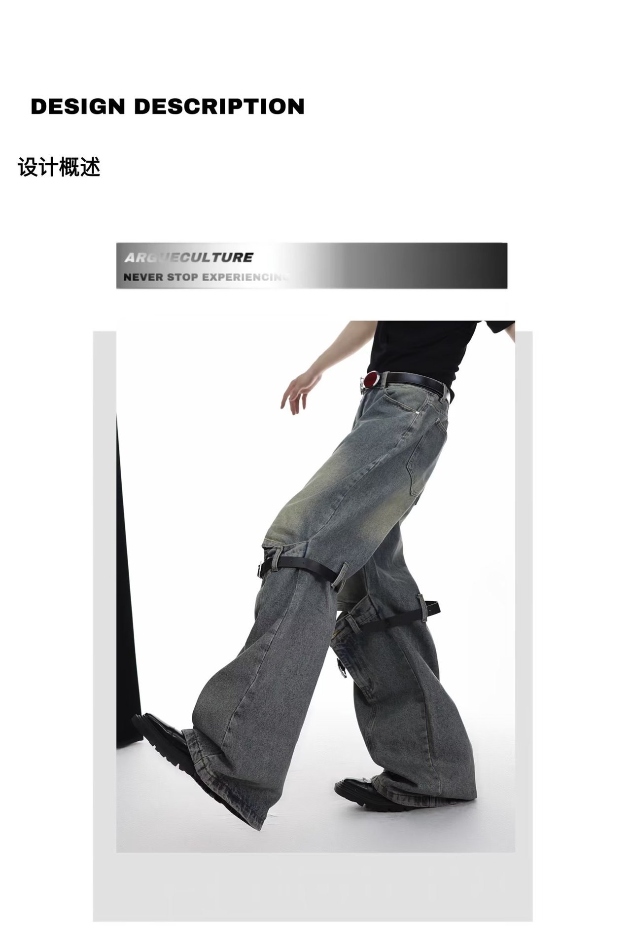 Cleanfit白い曲刀ジーパン男性式アメリカ式高街vibeズボンの腰が高くて痩せています。