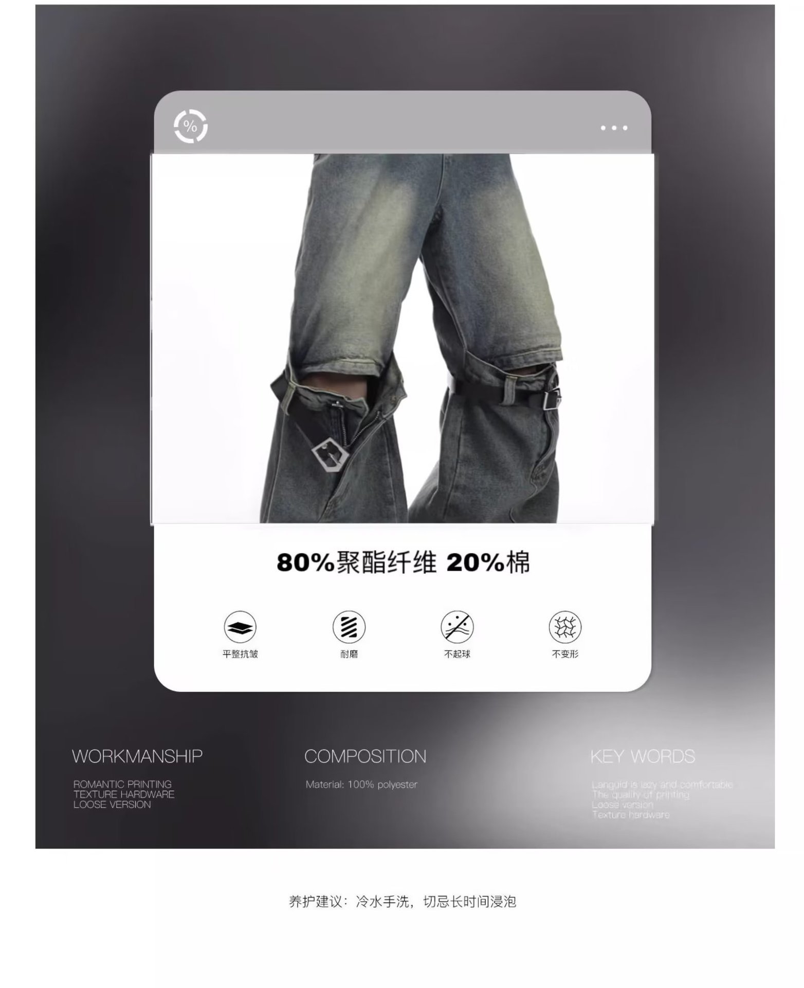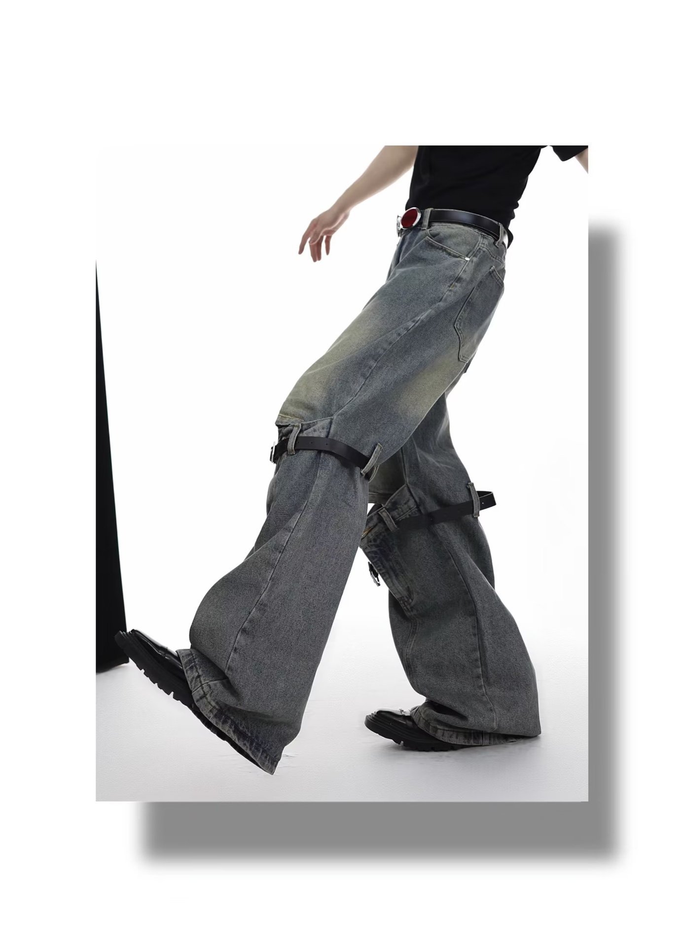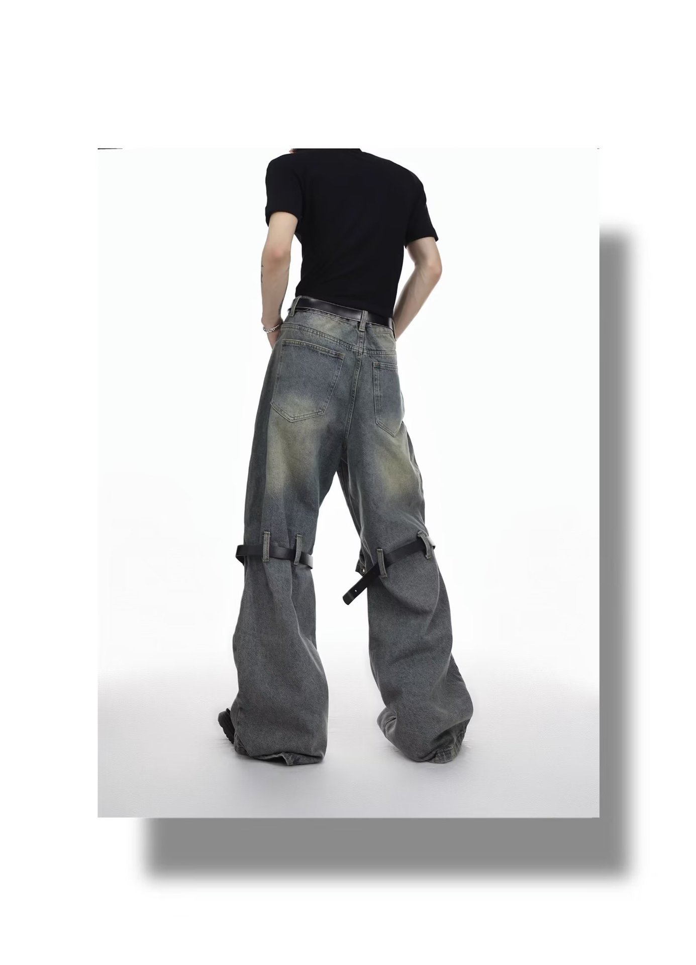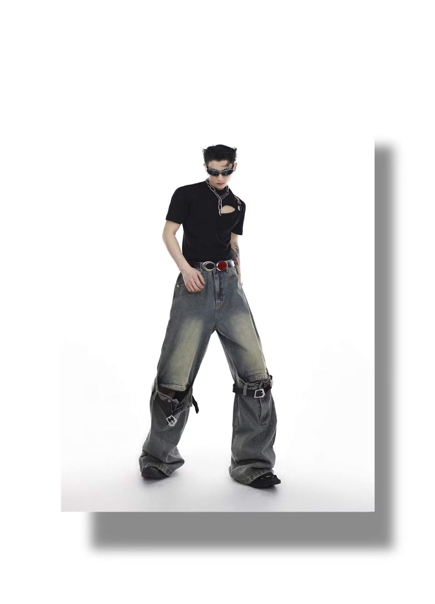 Cleanfit白い曲刀ジーパン男性式アメリカ式高街vibeズボンの腰が高くて痩せています。