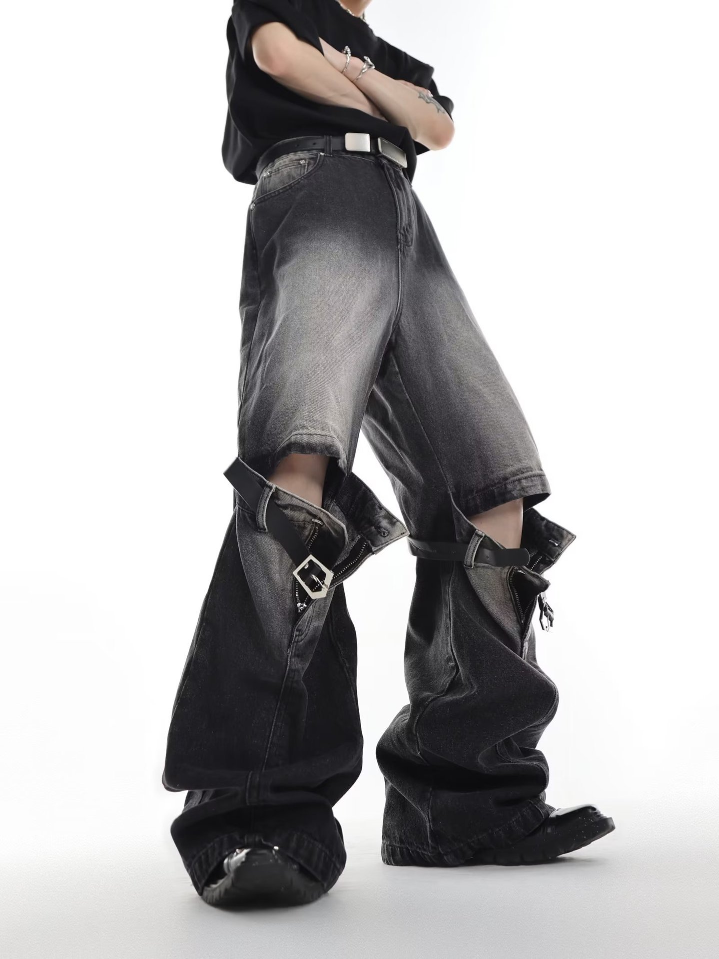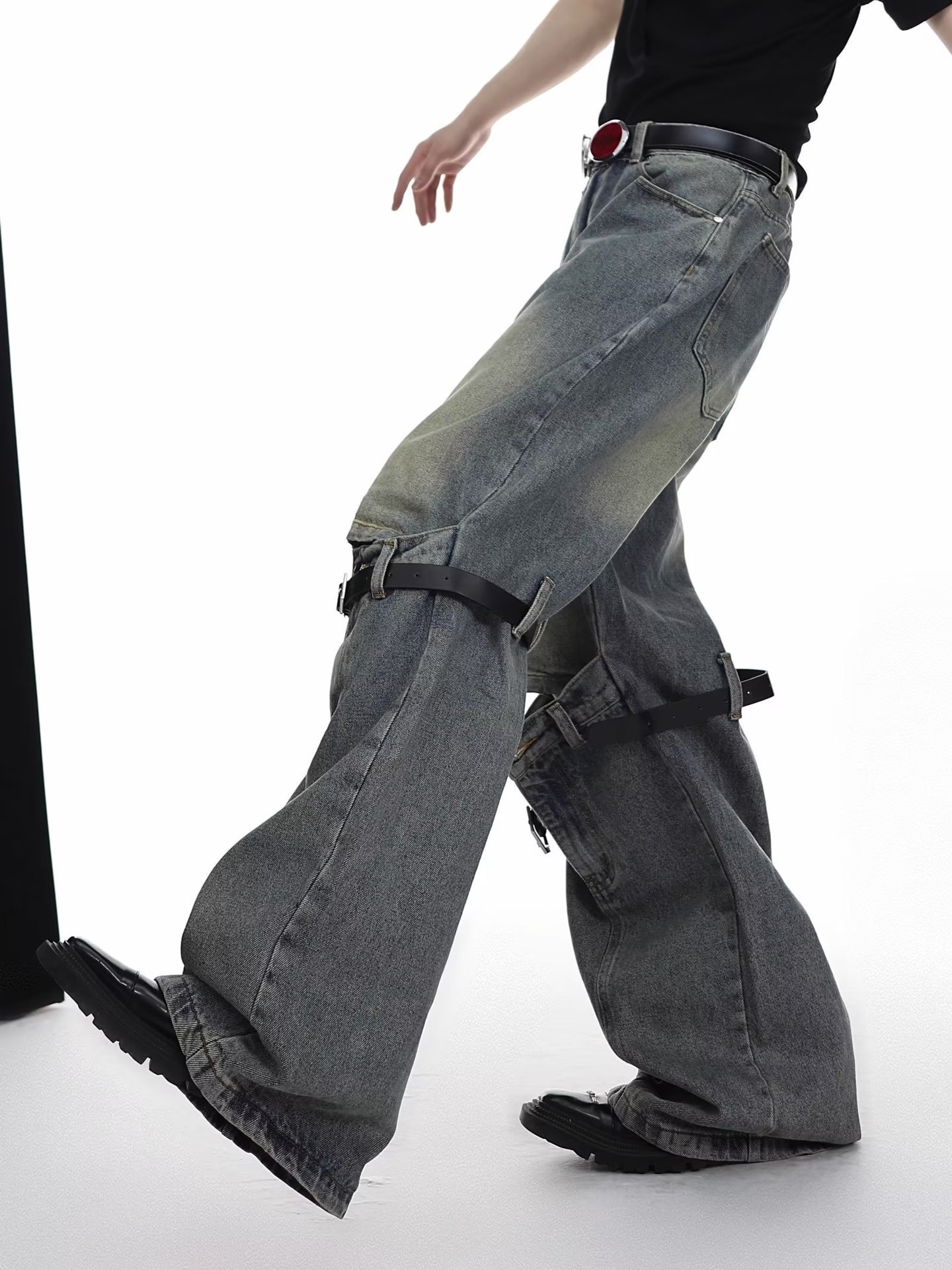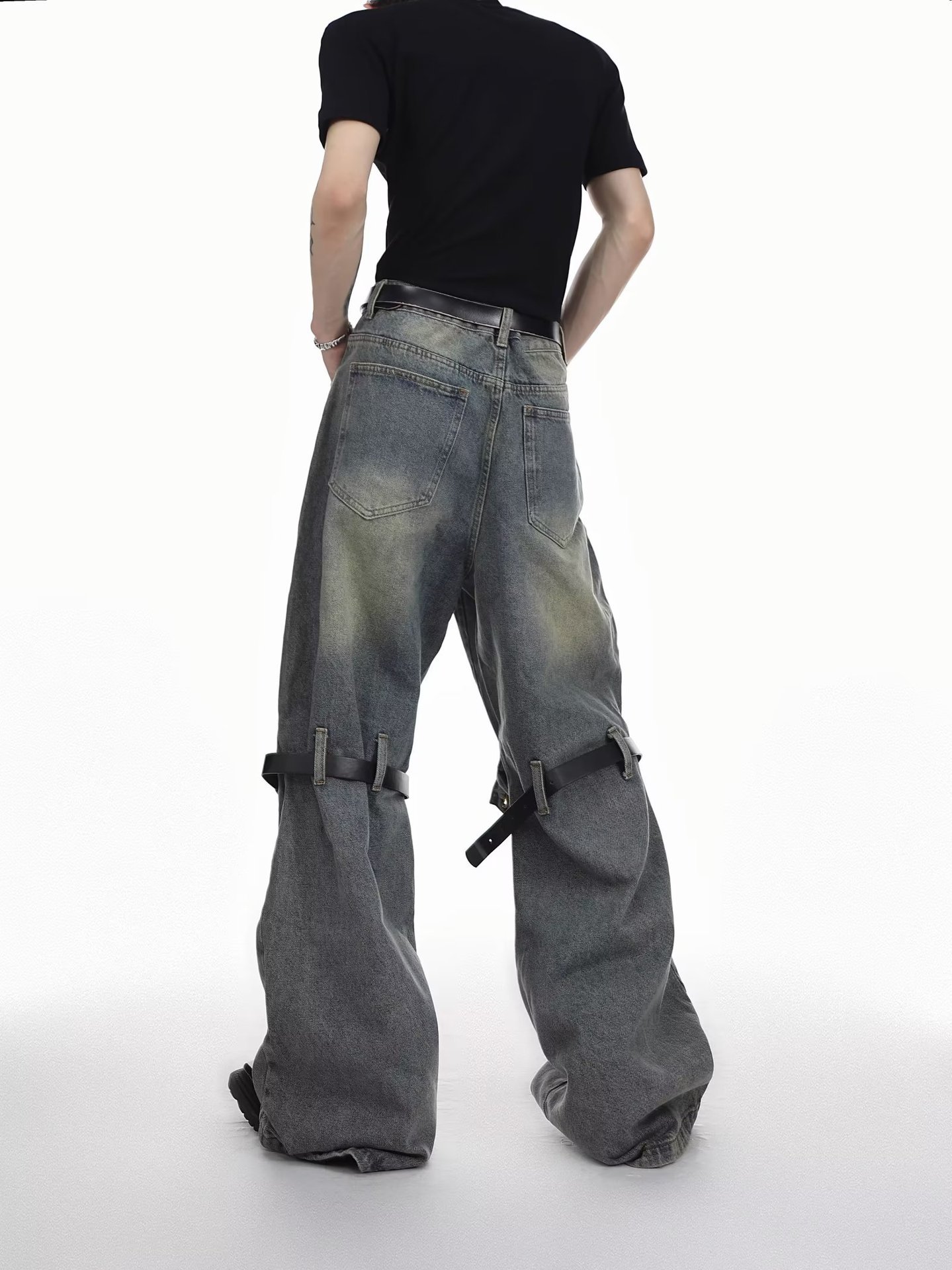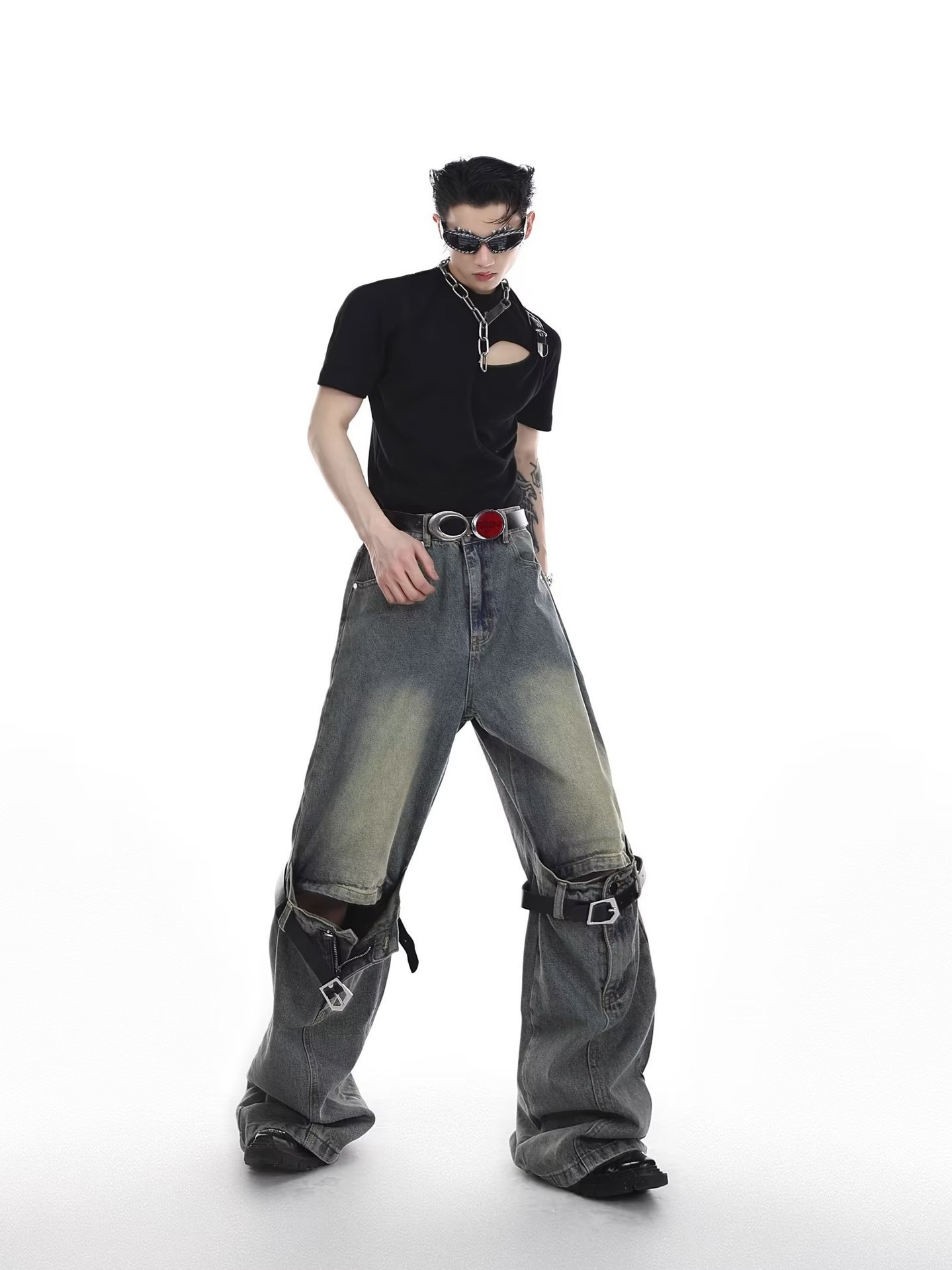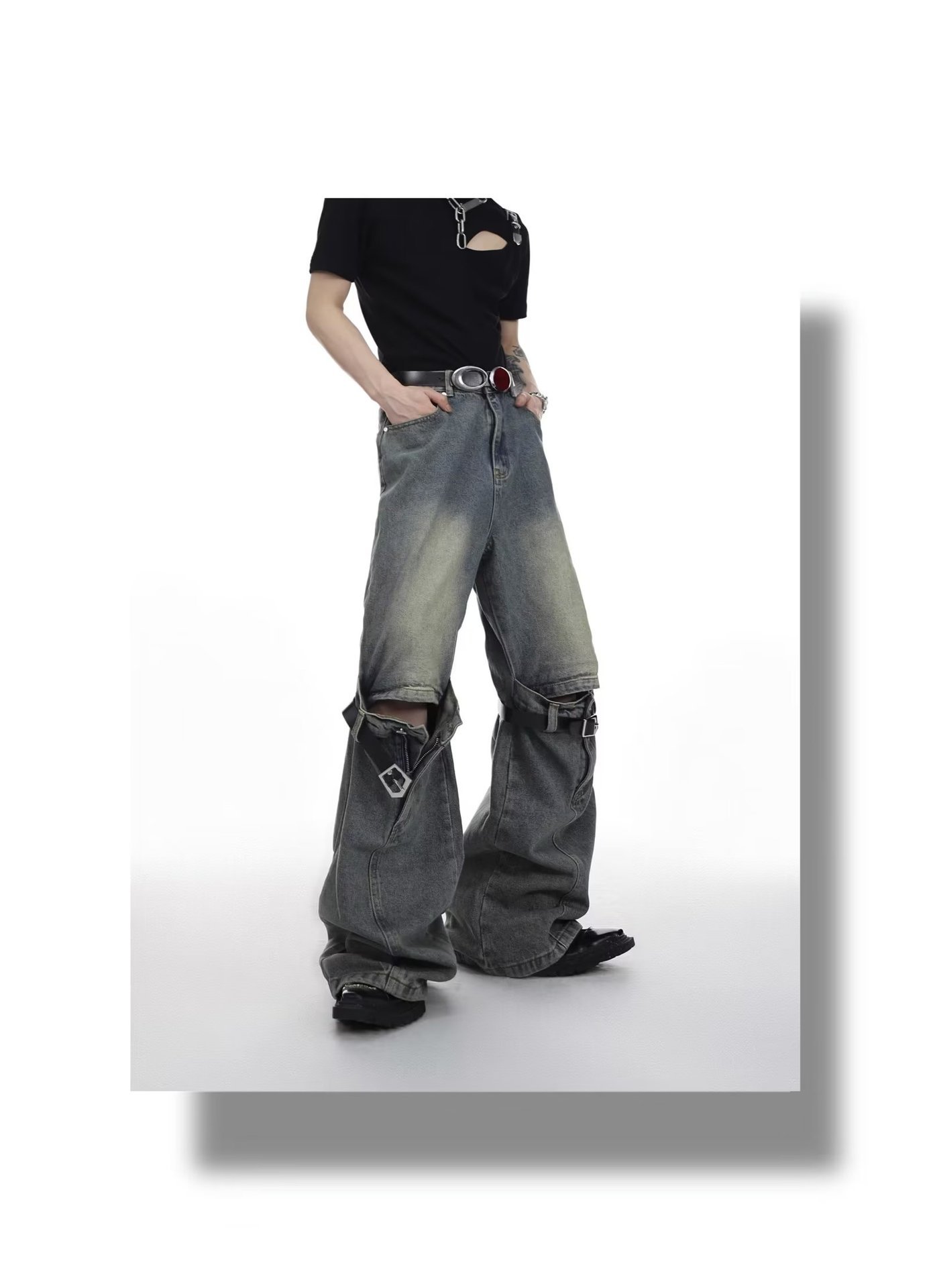 Cleanfit白い曲刀ジーパン男性式アメリカ式高街vibeズボンの腰が高くて痩せています。