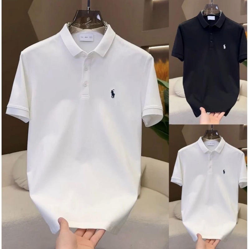 夏の新しいライト高級リトルバトル馬刺繍ポロシャツメンズトレンディな半袖無地ファッションハイエンド Tシャツトップ