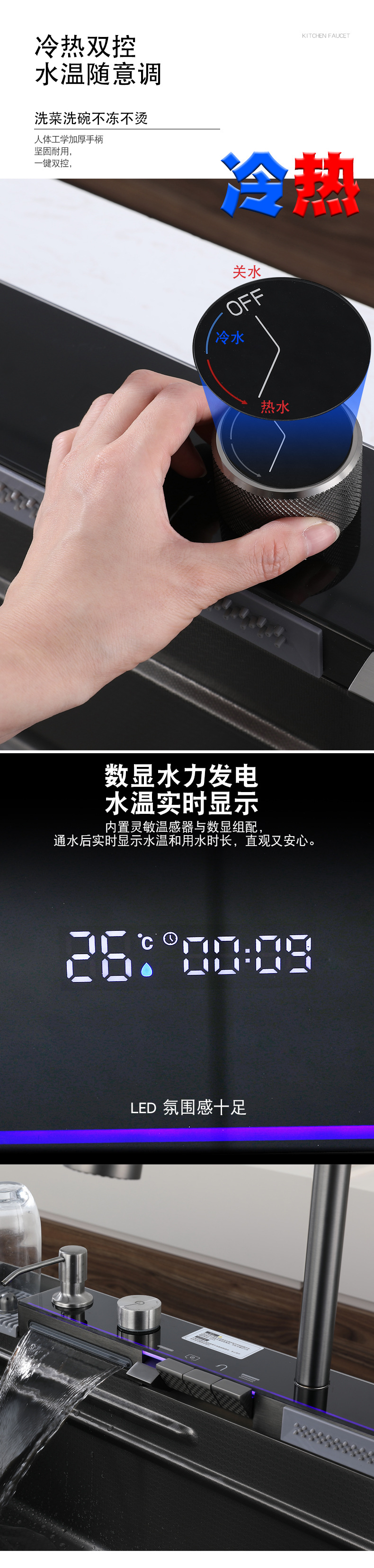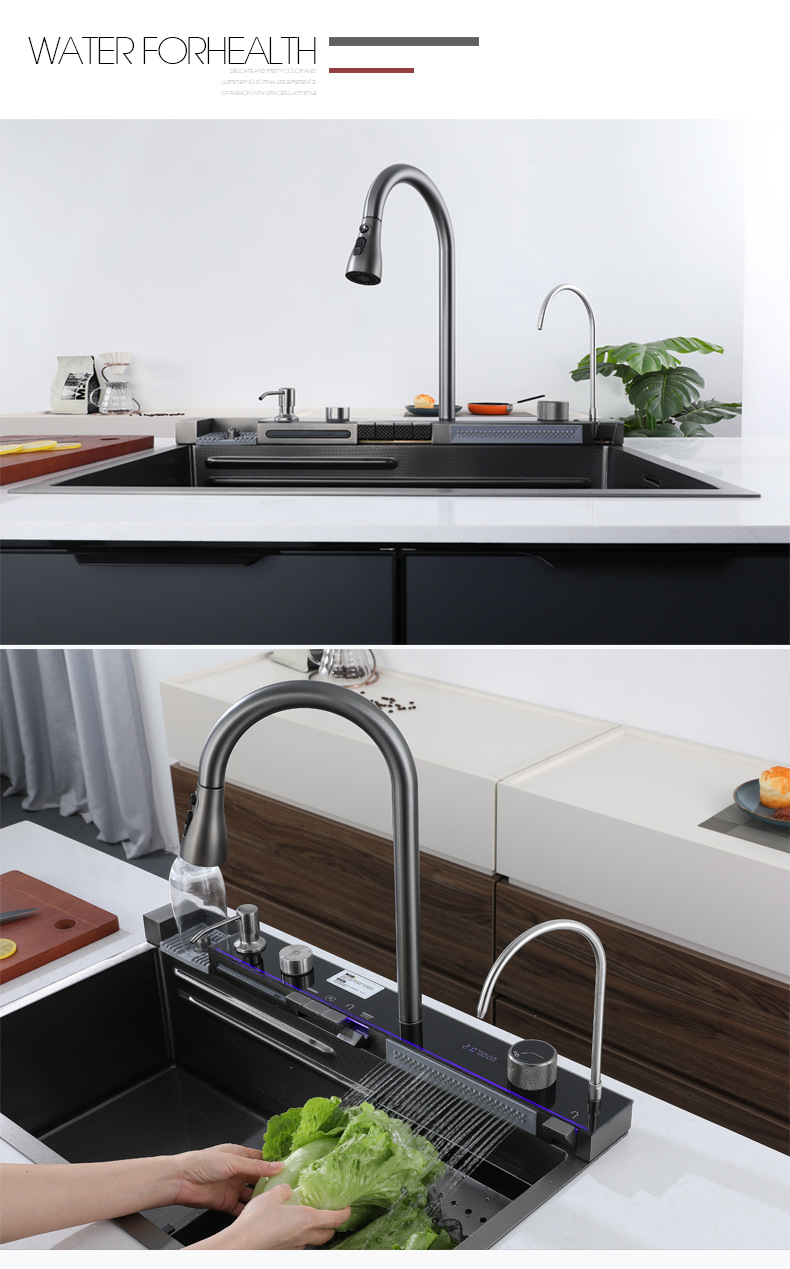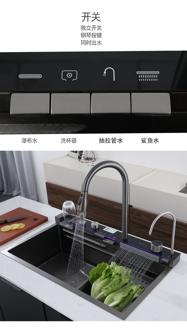 304ステンレスのハニカムの大きい単溝のハイエンドのピアノの鍵のデジタル表示の飛雨の滝の蛇口の一体のセットの雰囲気の明かり