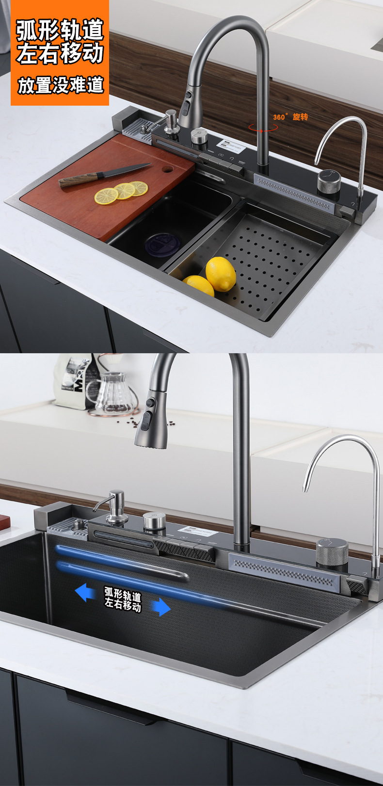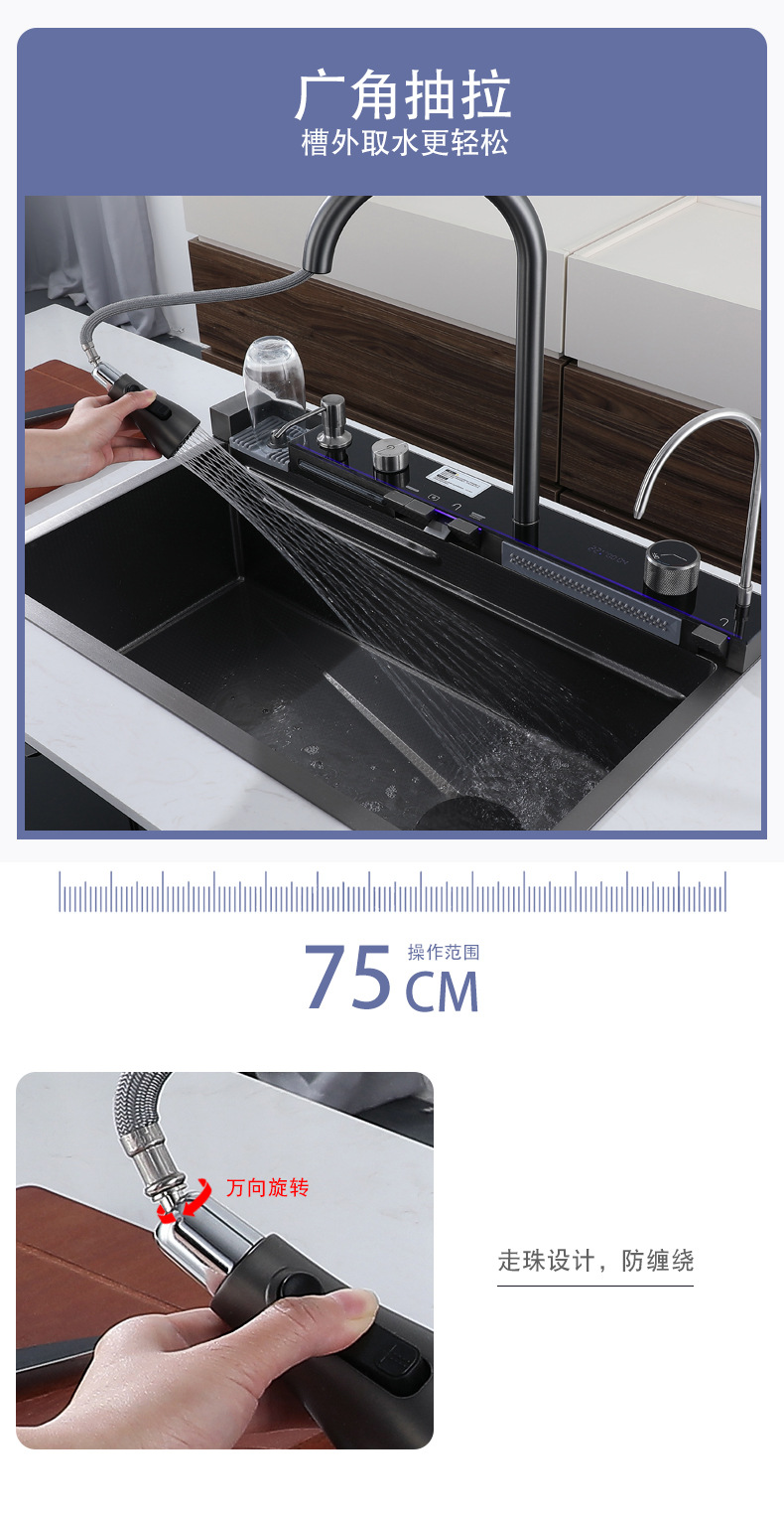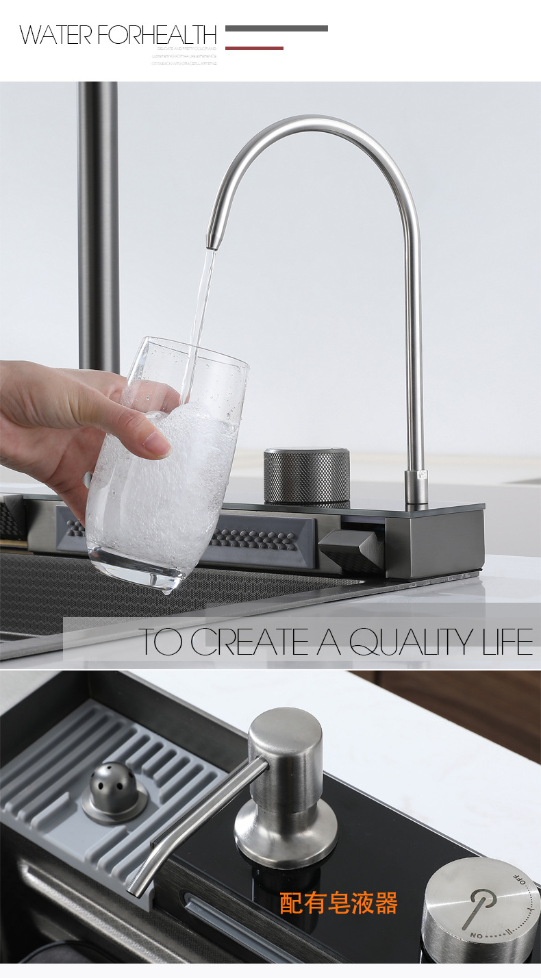 304ステンレスのハニカムの大きい単溝のハイエンドのピアノの鍵のデジタル表示の飛雨の滝の蛇口の一体のセットの雰囲気の明かり