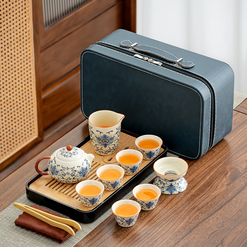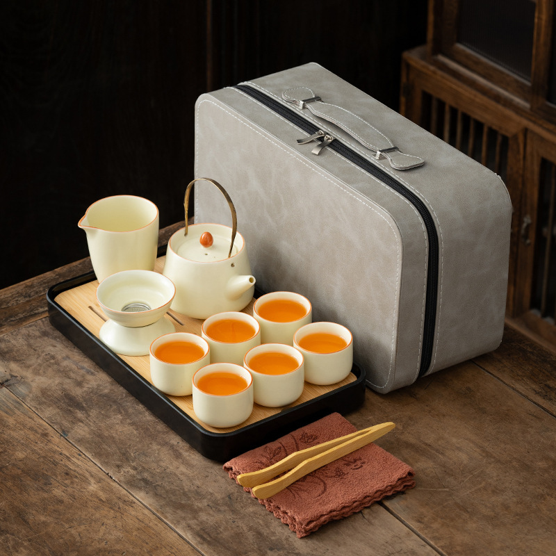 旅行茶器セット卸売り茶盤家庭用カンフーカップ屋外ポータブルティーポット陶磁器ビジネスプレゼント