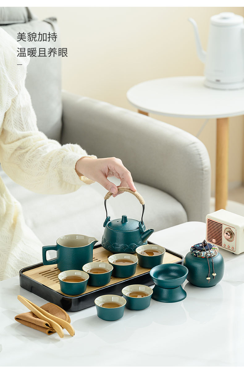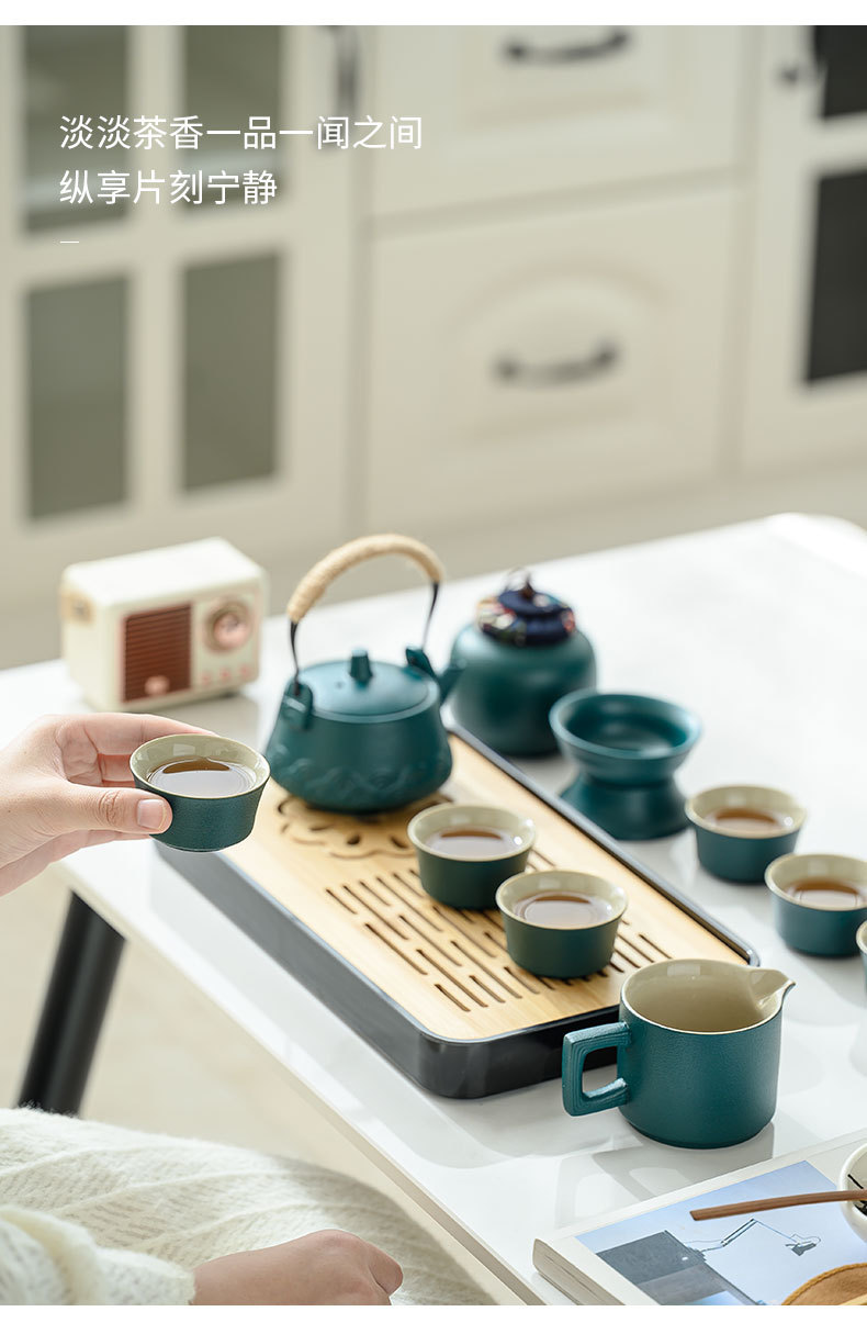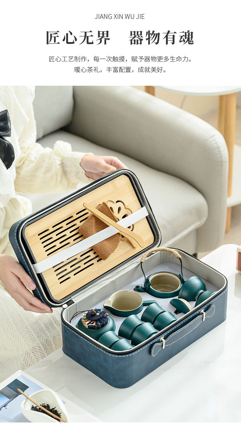 ポータブル旅行汝窯茶器皮包礼箱セットお茶を飲む家庭用陶磁器セット