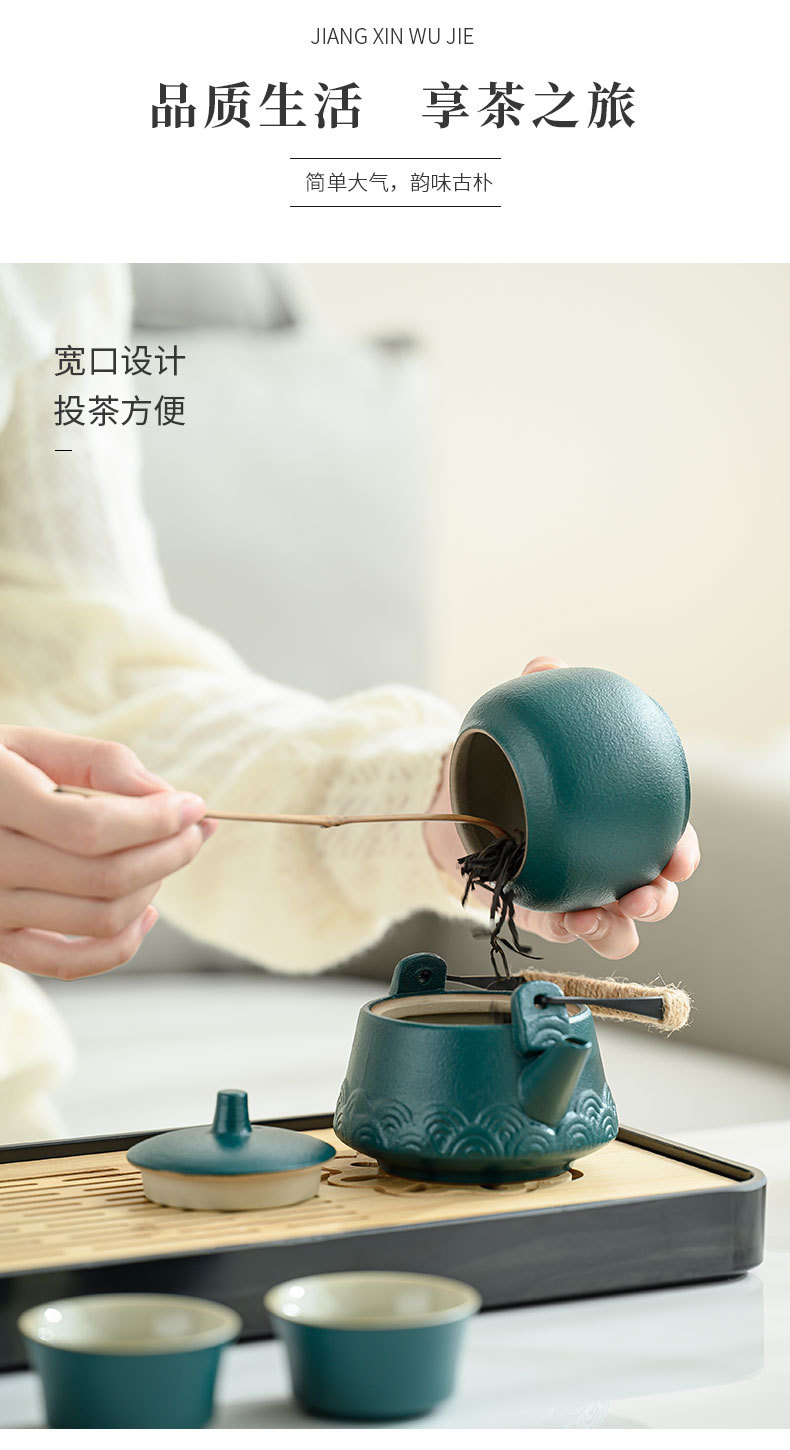シンプルなセラミックカンフーティーセット小さなセットティートレイティーポットティージャーセット旅行車アウトドアキャンプポータブル