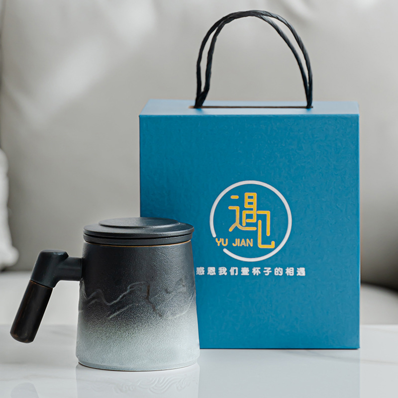 セラミックオフィスカップ茶水分離カップマグカップカップシンプルな水カップ泡カップビジネスプレゼント卸売り