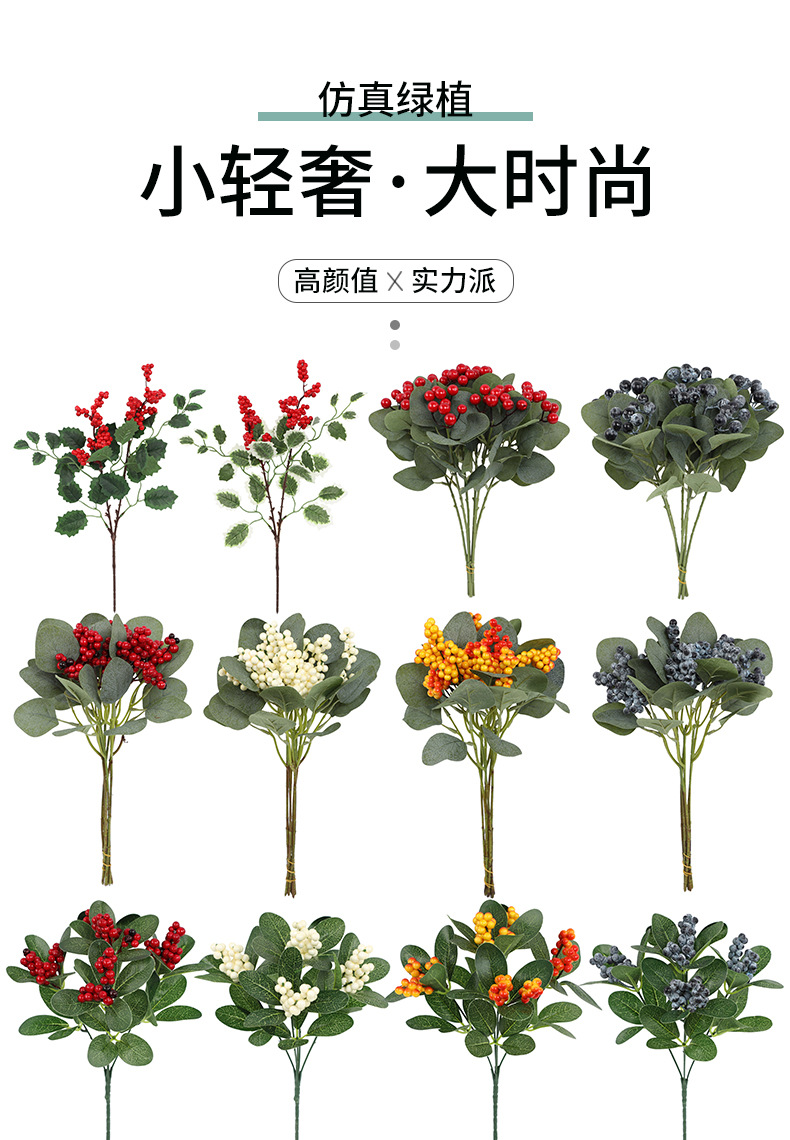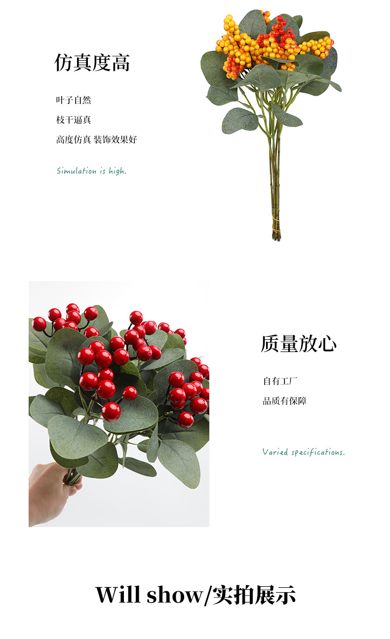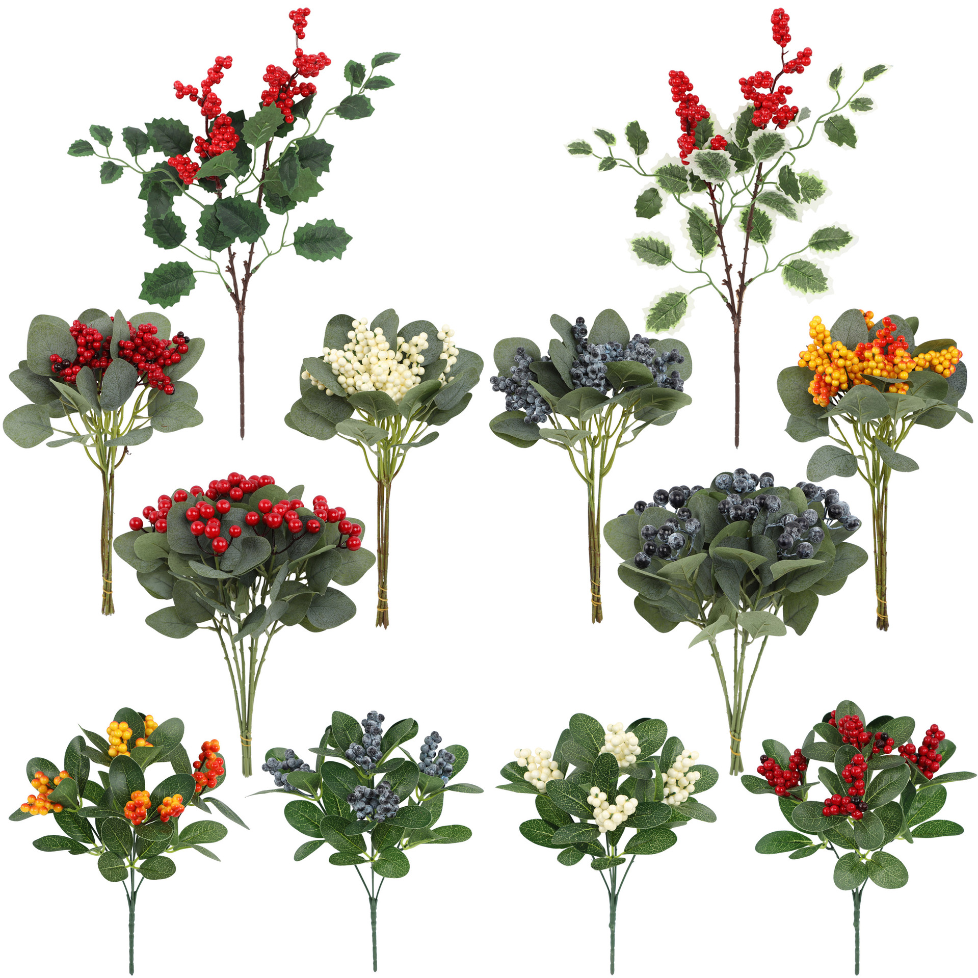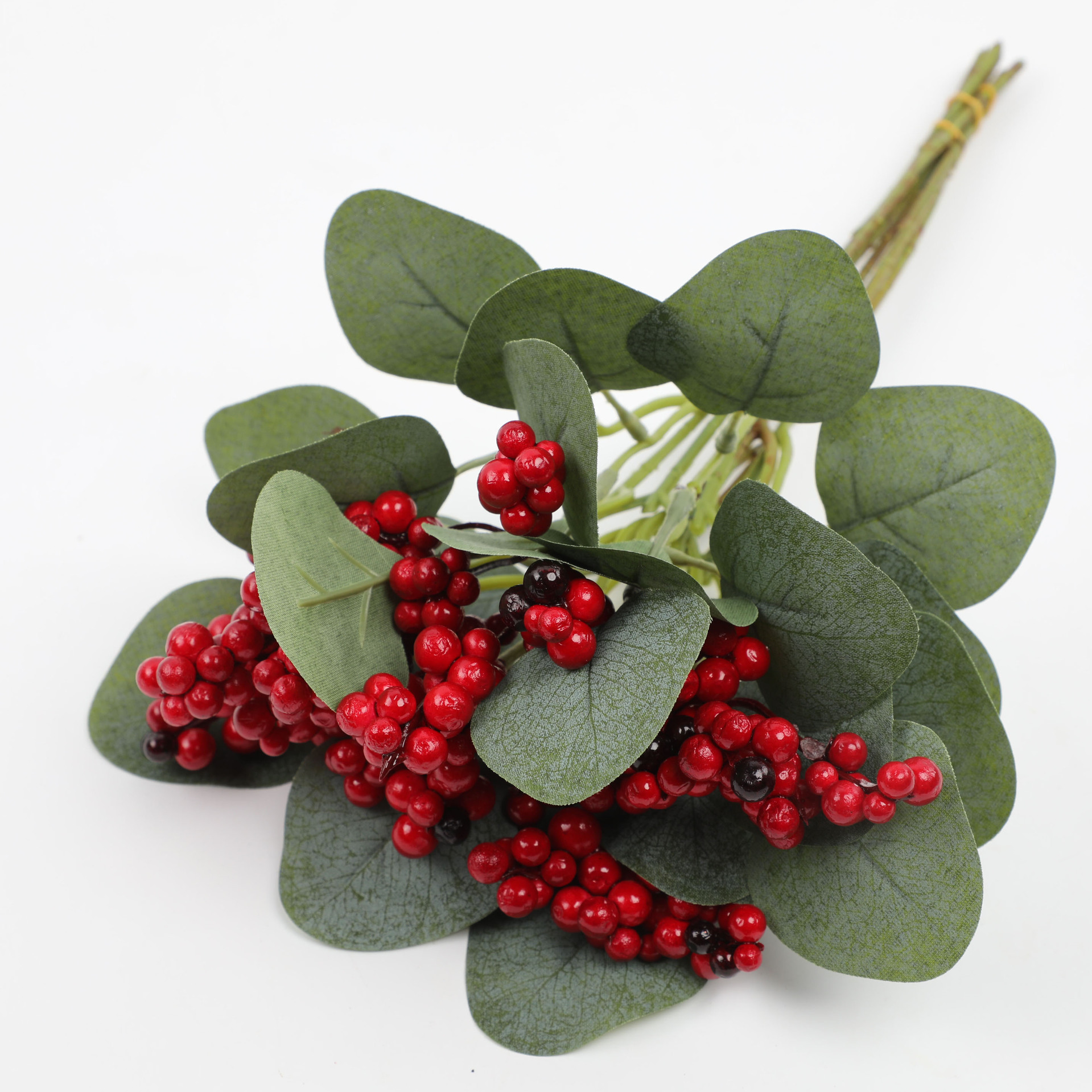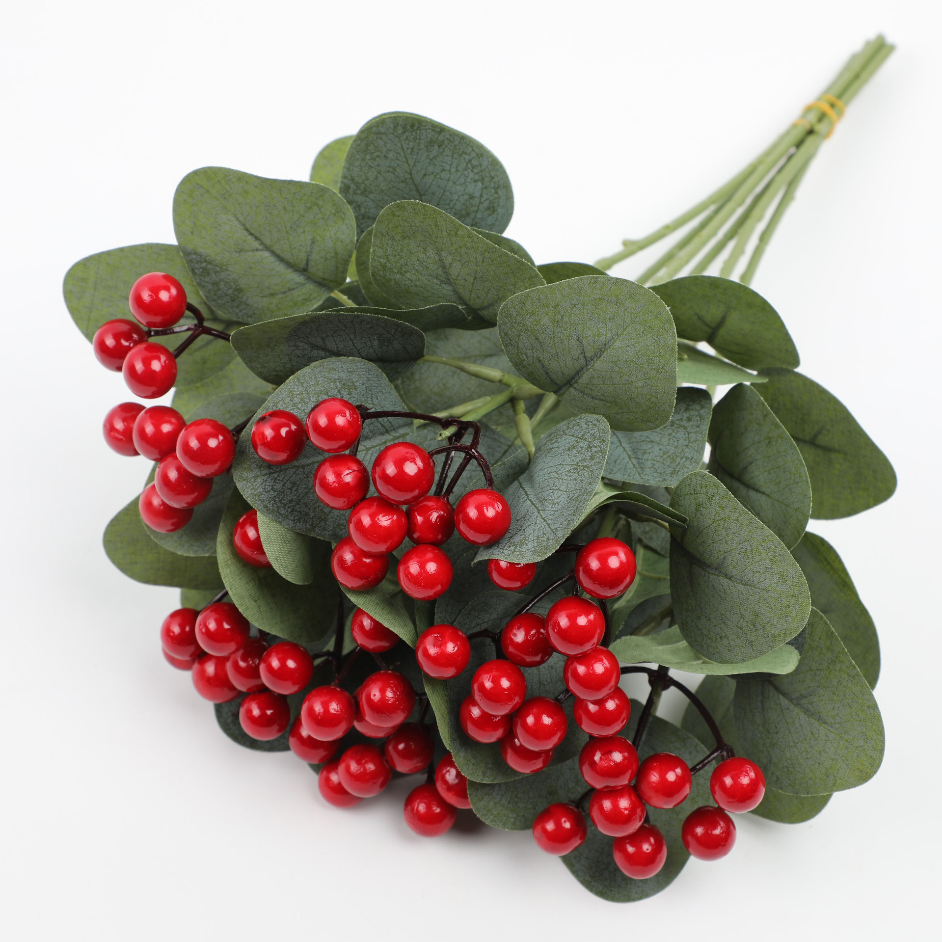 クリスマス模造紅果福果ユーカリの葉ユーカリグリーン人工花装飾ホームフラワーアレンジメント卸売