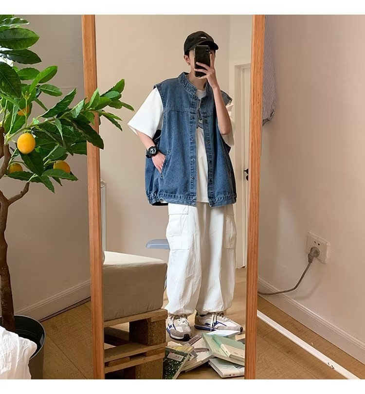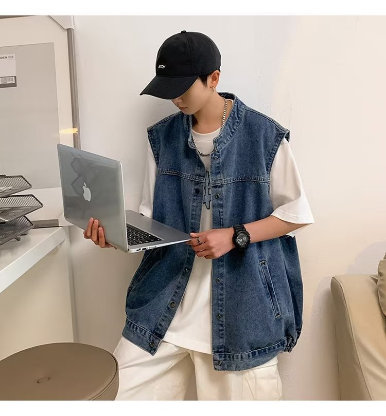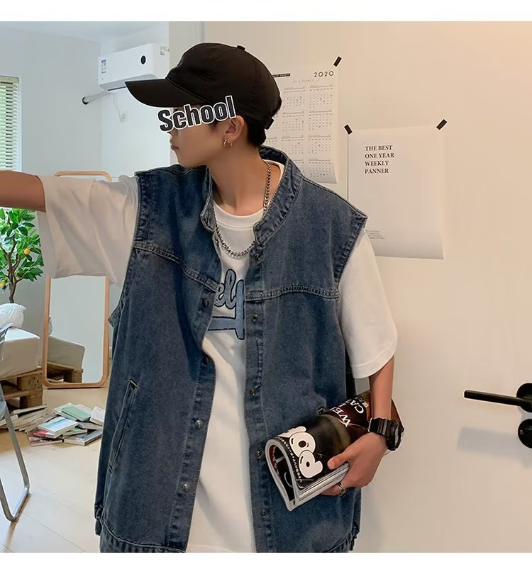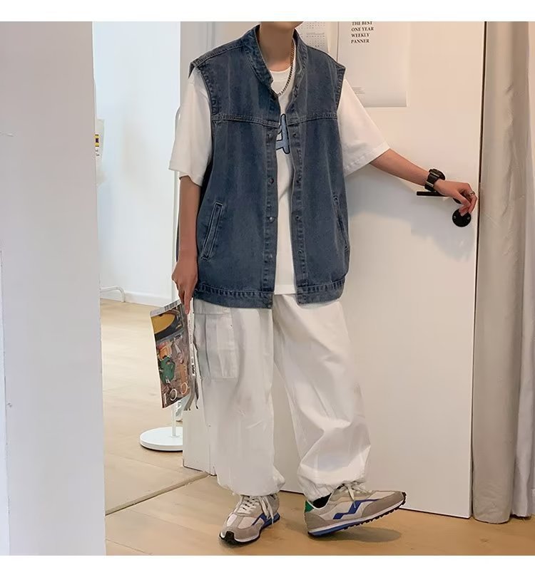 デニムのベスト男の秋のファッションのブランドはゆったりとしています。
