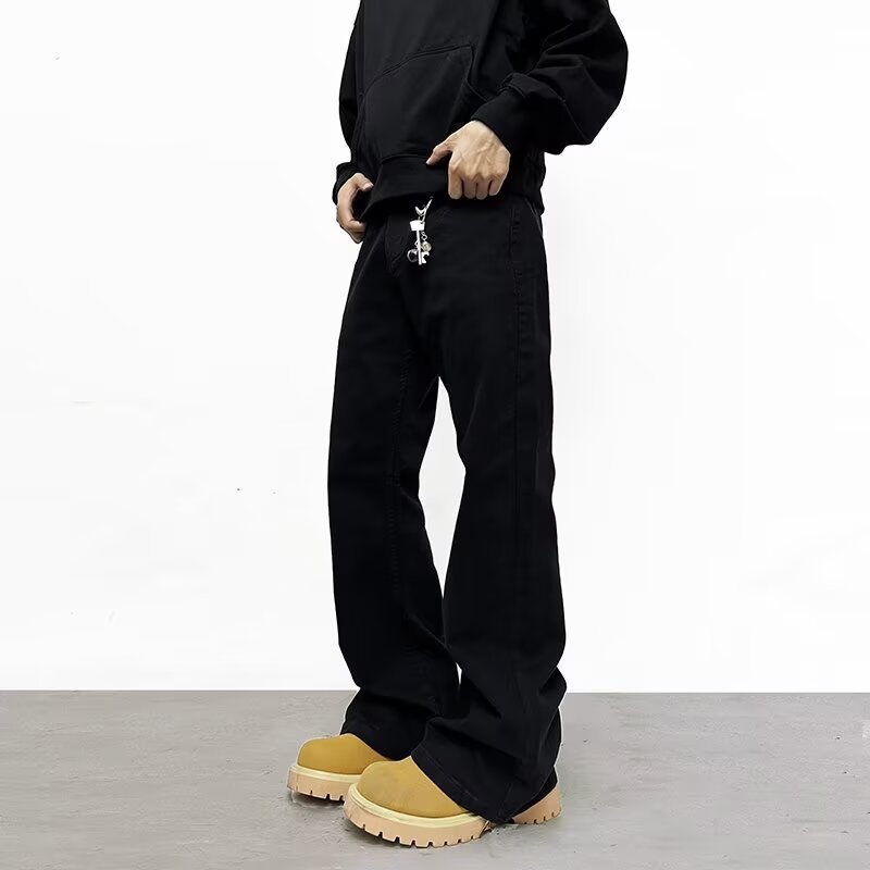 新品パリブートカット角ナイフジーンズ男性アメリカ式cleanfitストレートマイクロラッパ黒いズボンハイストリート