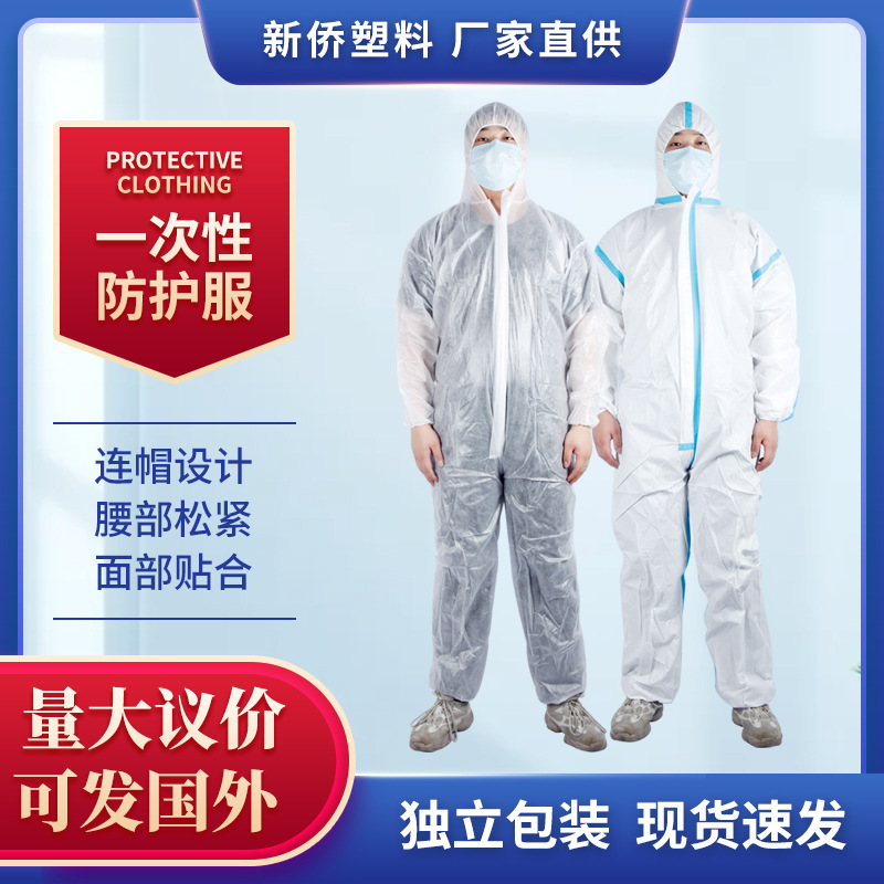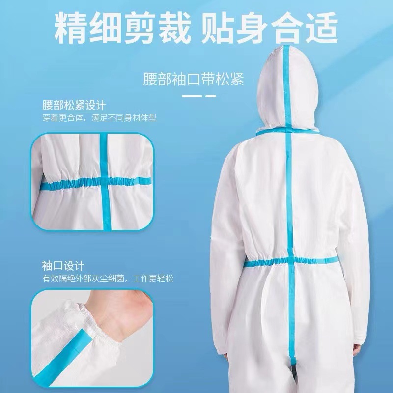メーカー現物使い捨て白色シールフィルム連体防護服不織布pe防塵通気独立包装