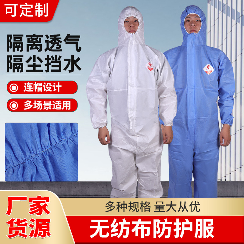 防护服一次性带帽连体无纺布工作服猪场养殖场钓鱼喷漆防水阻隔服