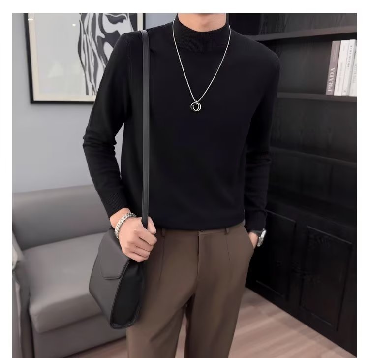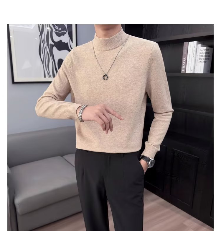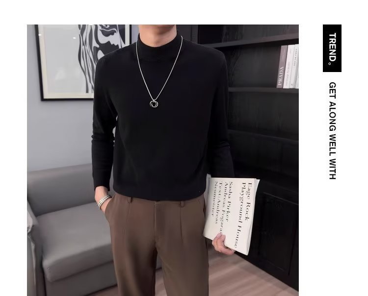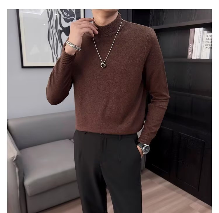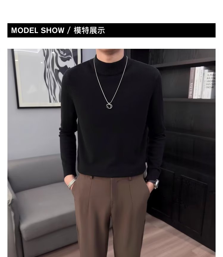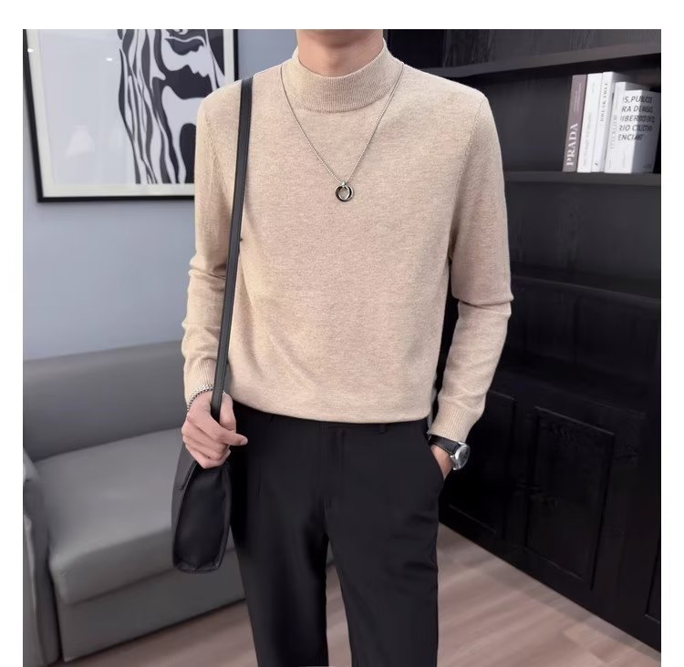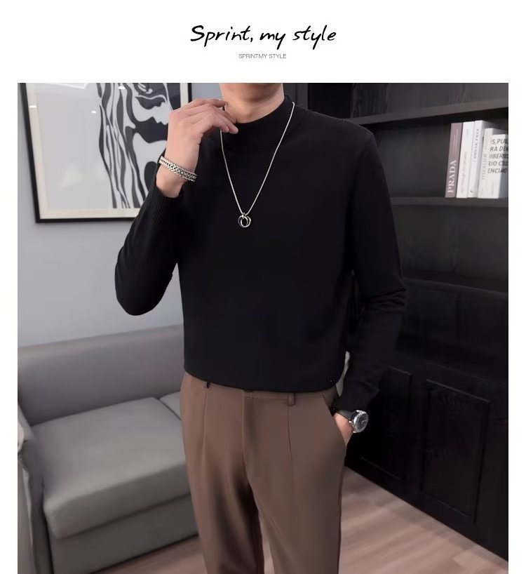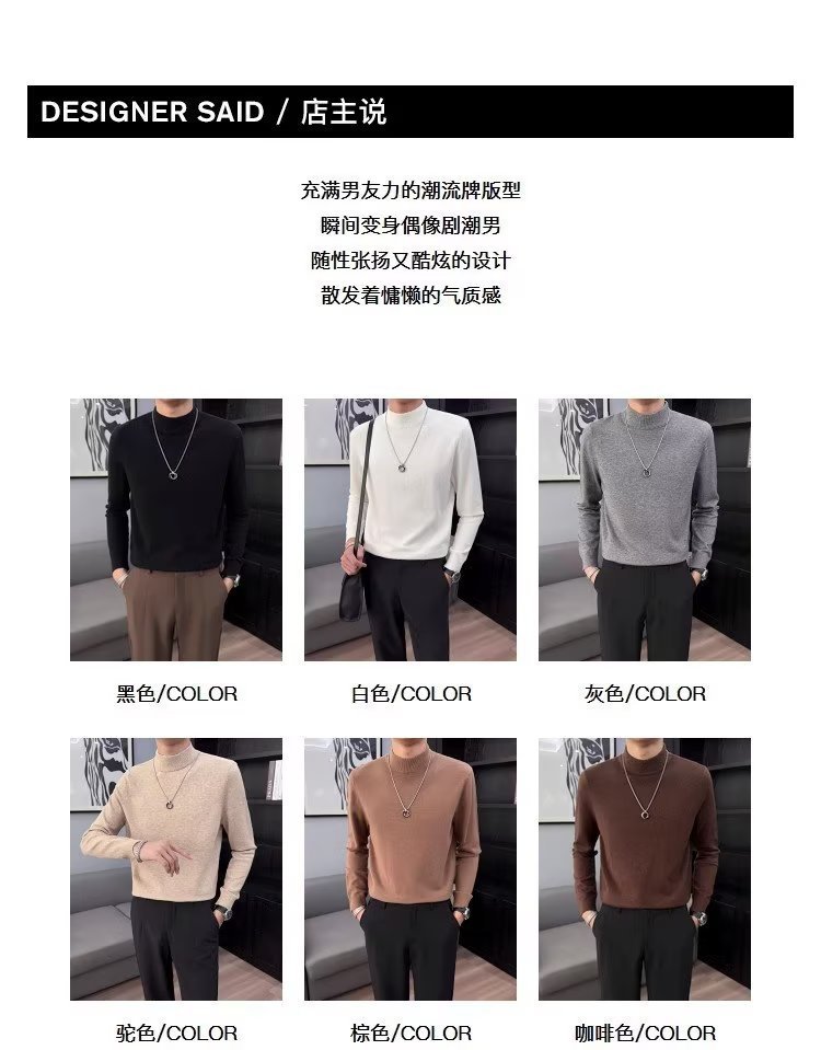 半高襟セーター男性秋冬2023新ファッション厚手のニットシャツ春秋セーターコート