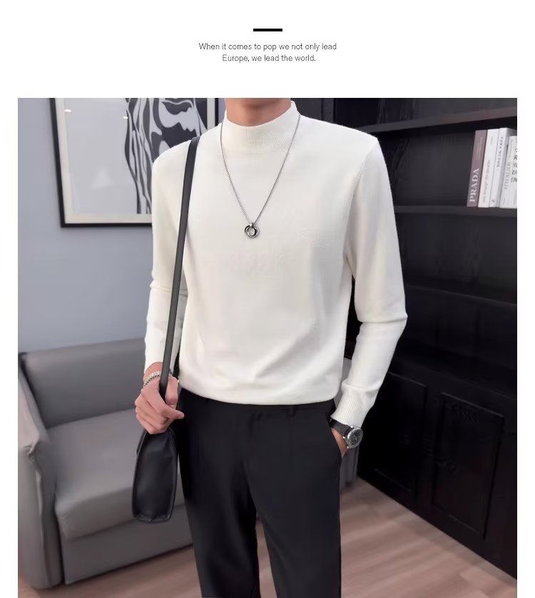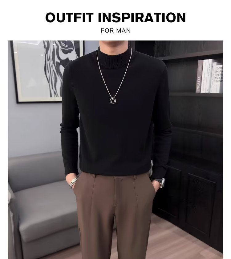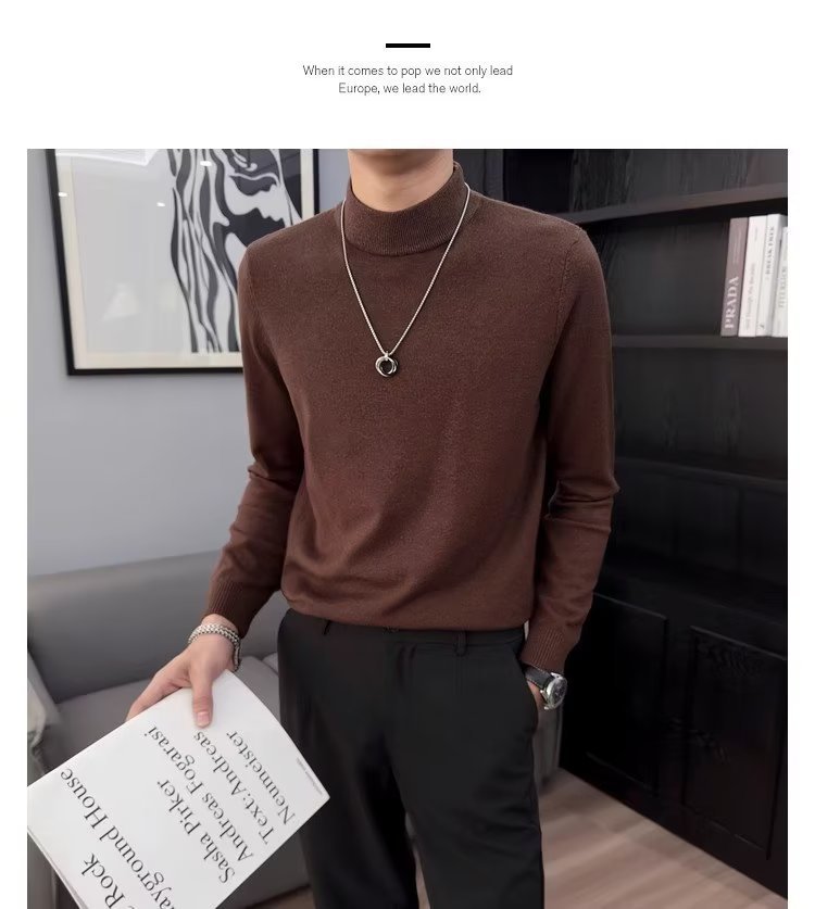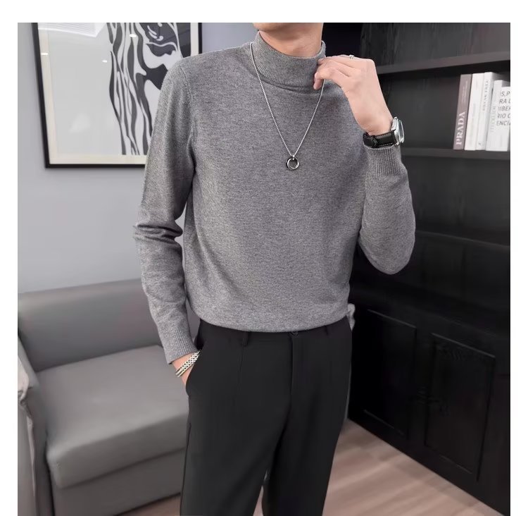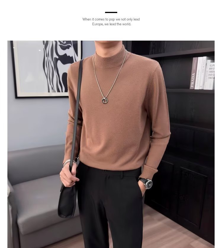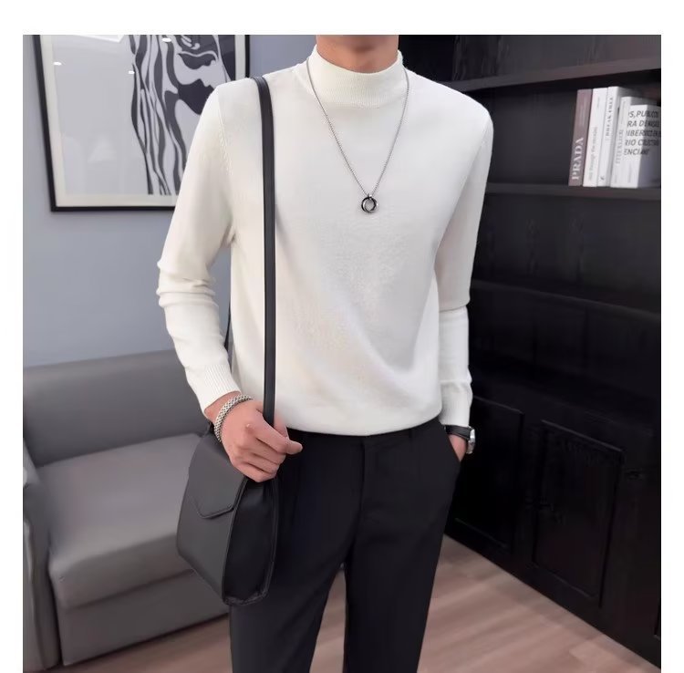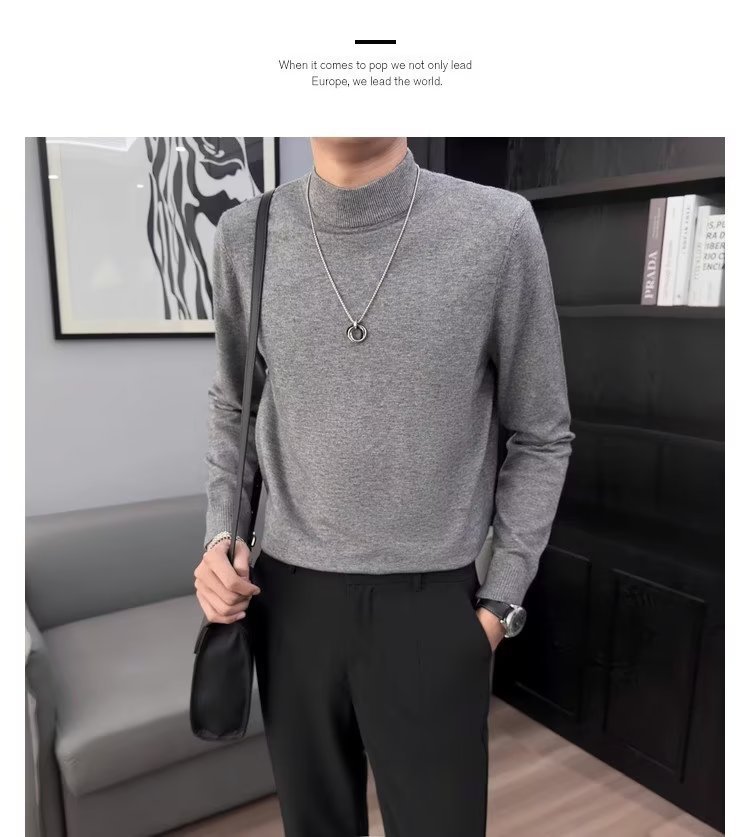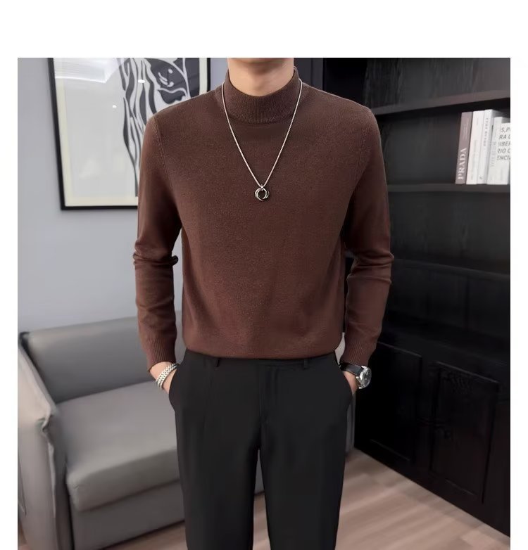 半高襟セーター男性秋冬2023新ファッション厚手のニットシャツ春秋セーターコート