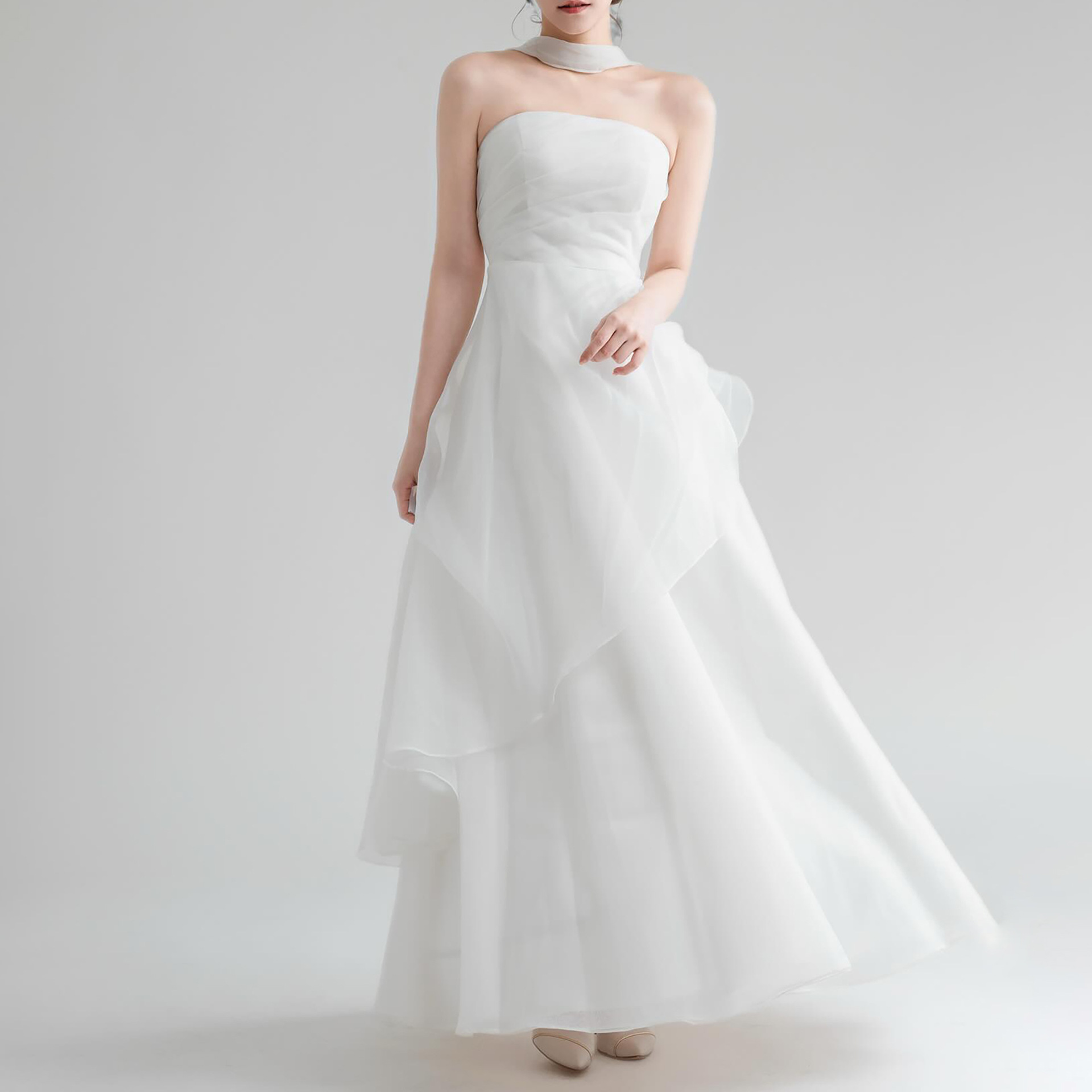 韓国式の軽いウェディングドレスはシンプルで高級感があります。