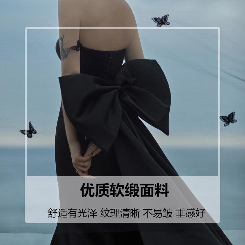 夜のドレスは胸を拭きます。黒い韓国系はシンプルで高級感があります。