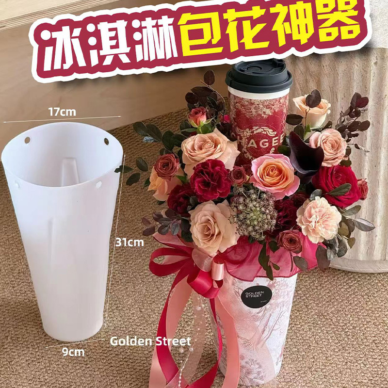 七夕花艺花店箭筒甜筒花束桶冰激凌快速包花神器鲜花插花模具批发