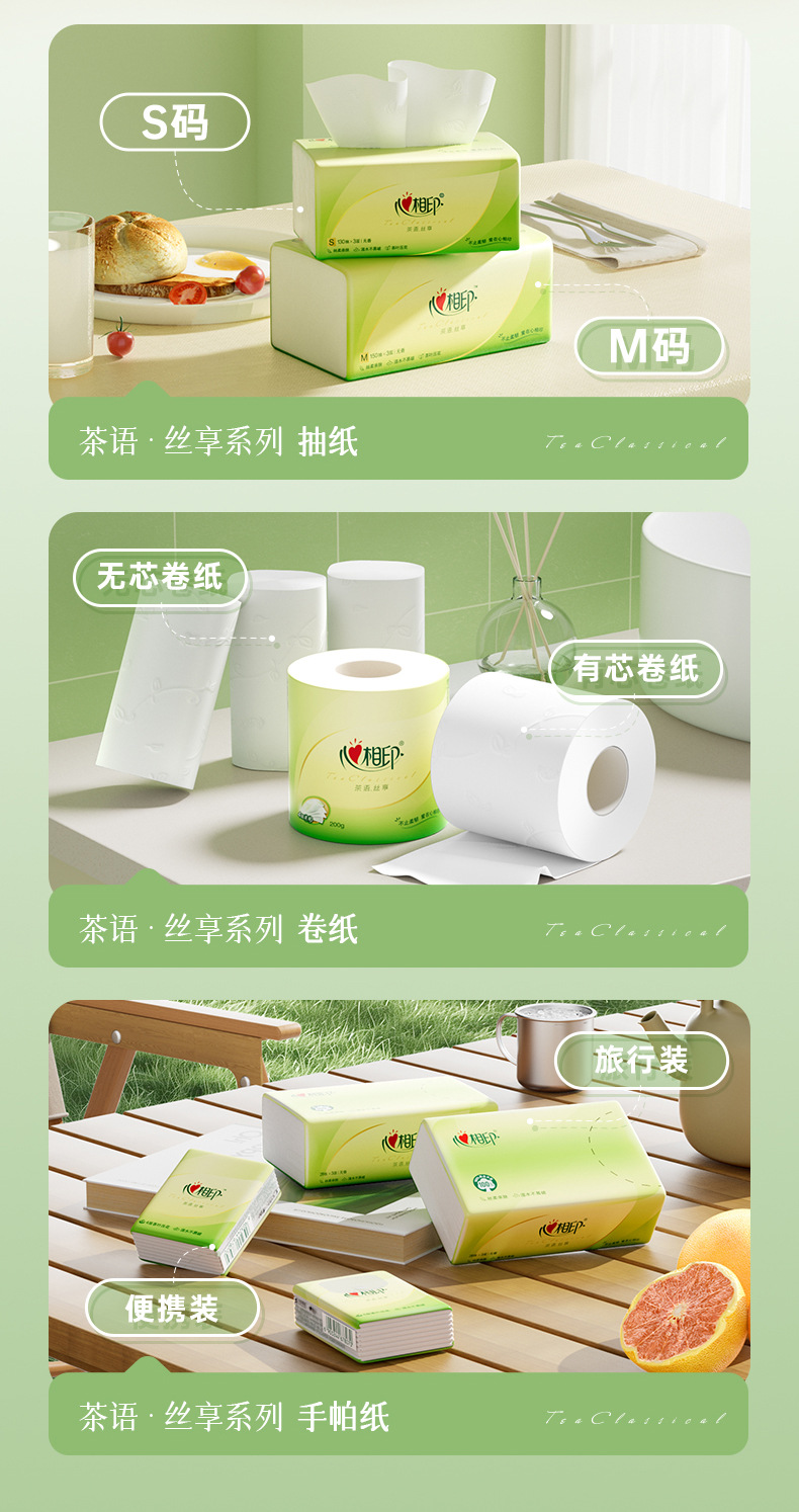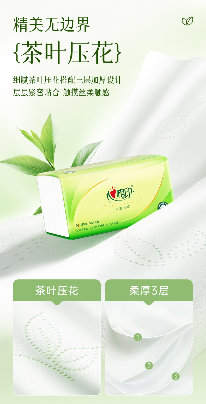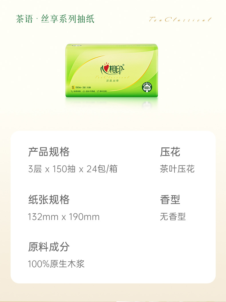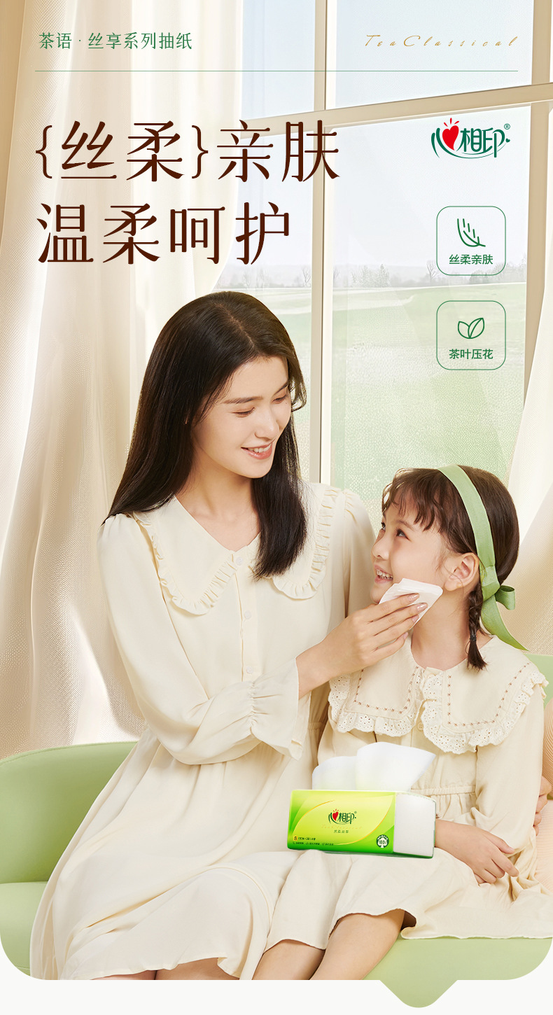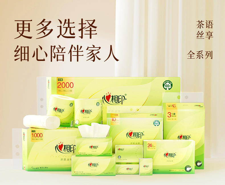 心相印抽纸5包120抽茶语纸巾整箱实惠装家用面巾纸卫生纸批发