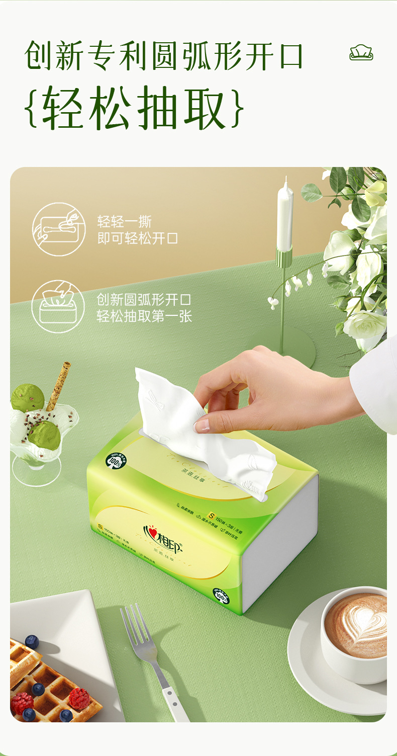 心相印150は箱全体の大きいサイズの家庭用の紙を引き出して、心相印紙はティッシュのトイレットペーパーを引き出します。