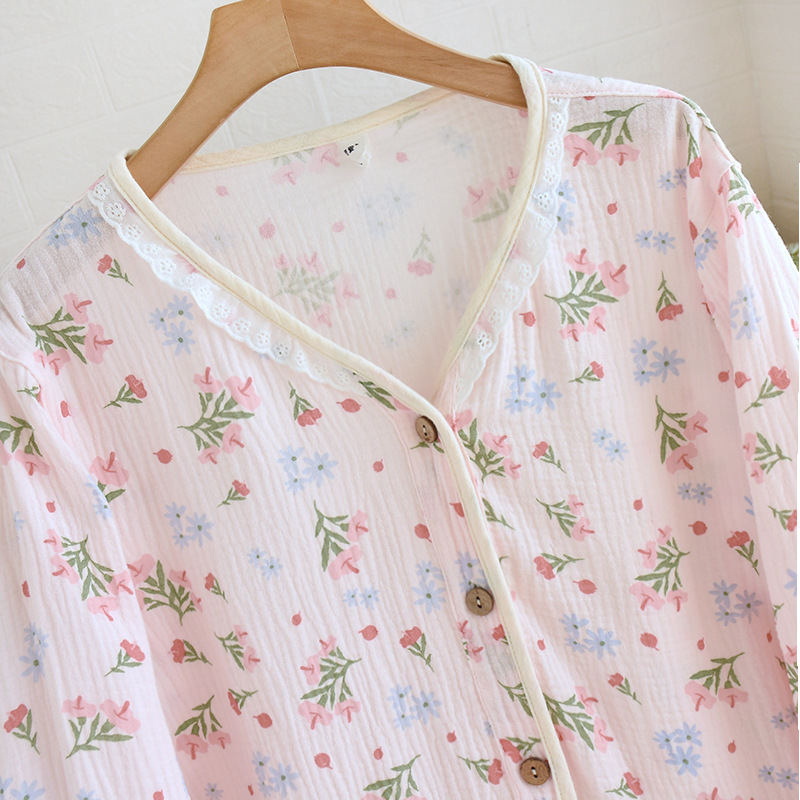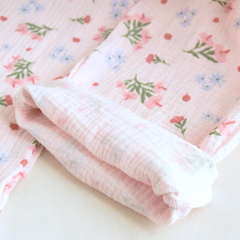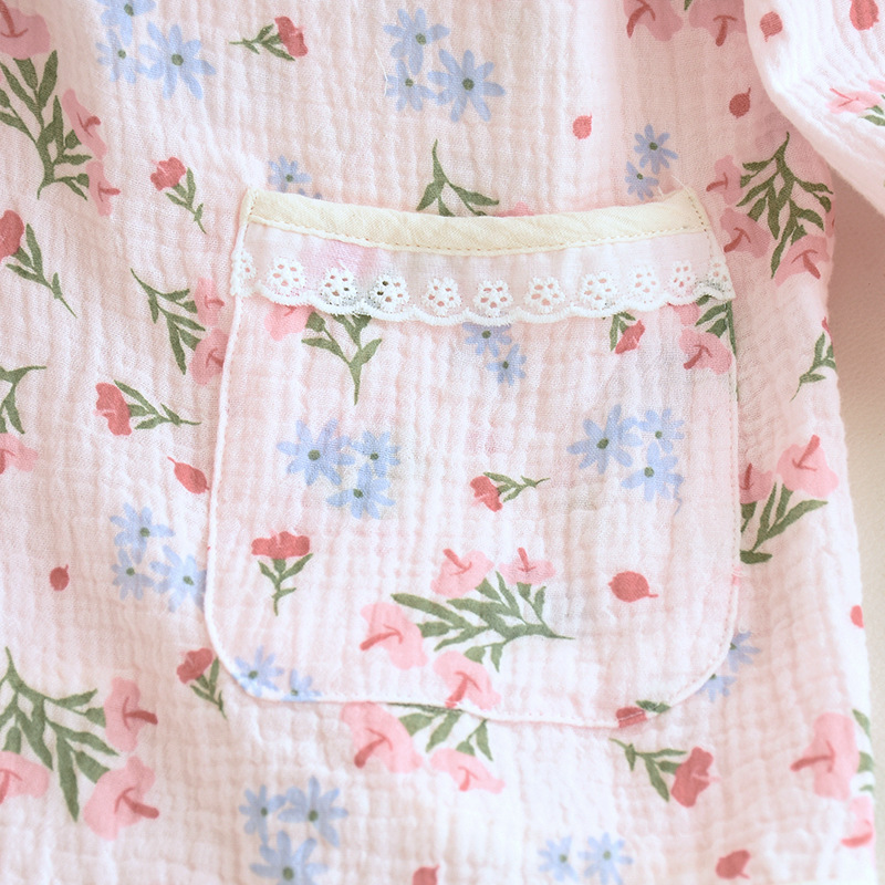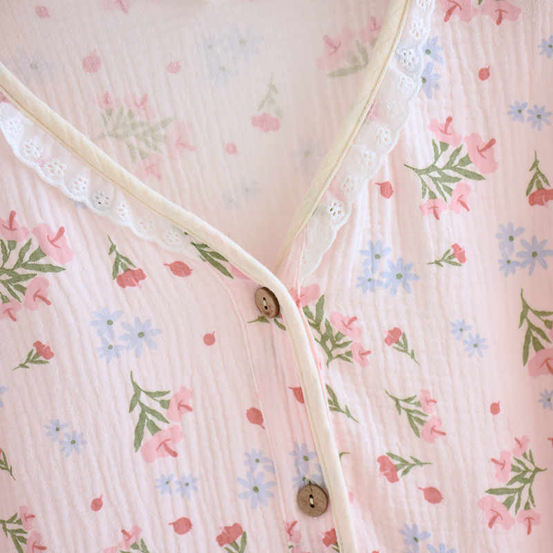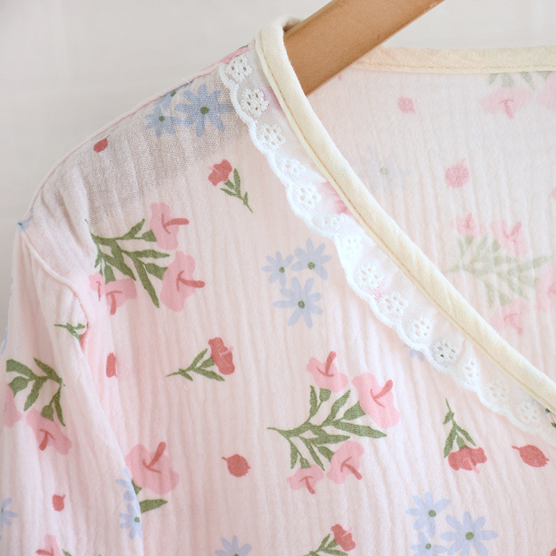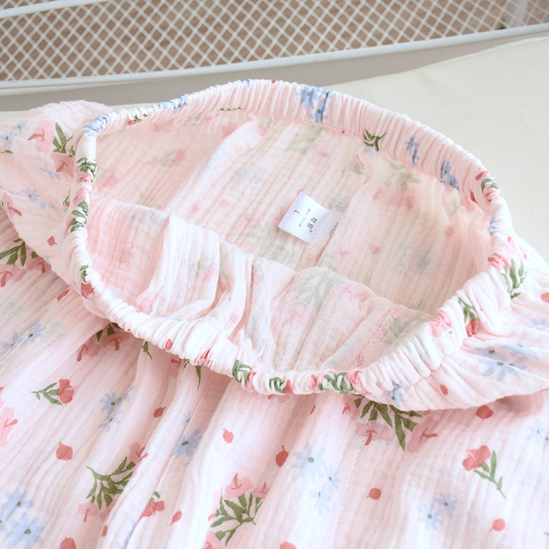 春夏純綿二重ガーゼ家庭用パジャマレディース中袖パジャマ甘いクレープ家庭用パジャマワンピース