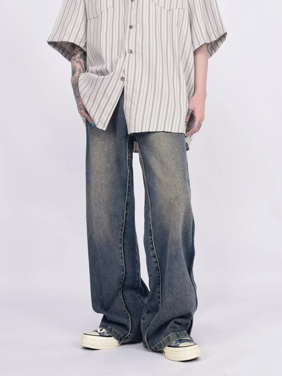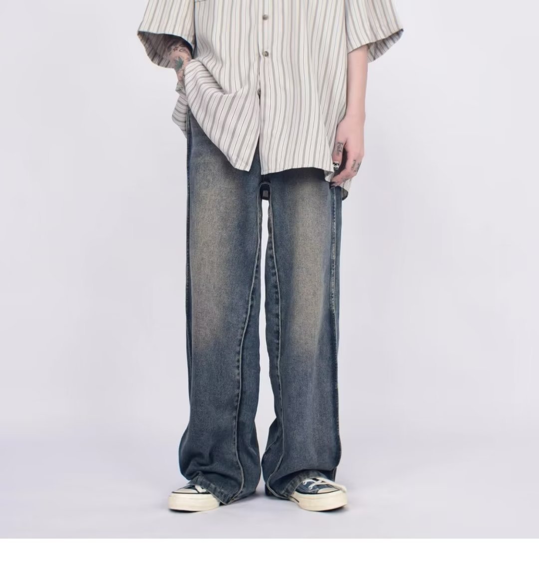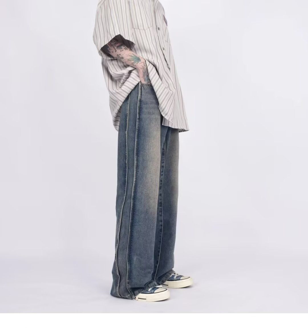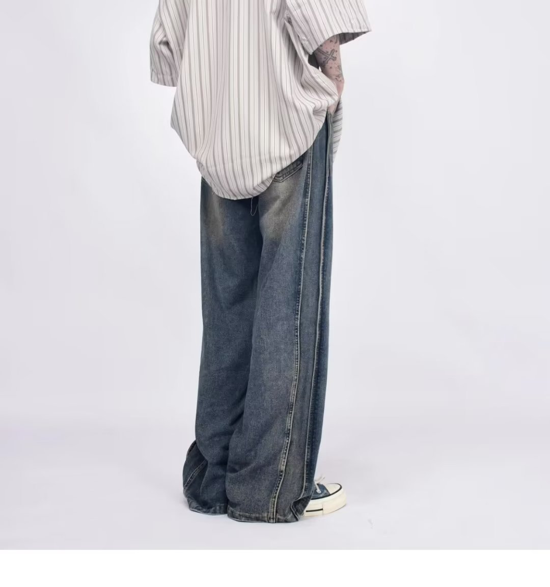 アメリカのレトロなサイドは水洗いのジーパンの男性のデザイン感をつなぎ合わせます。