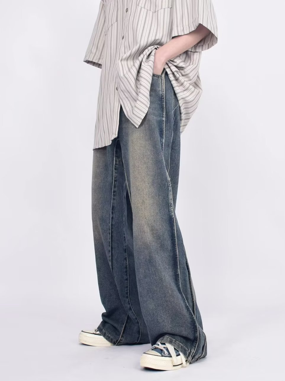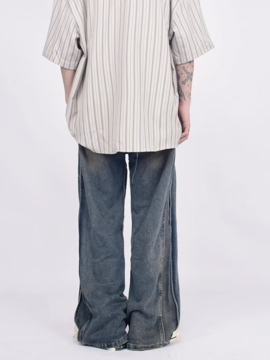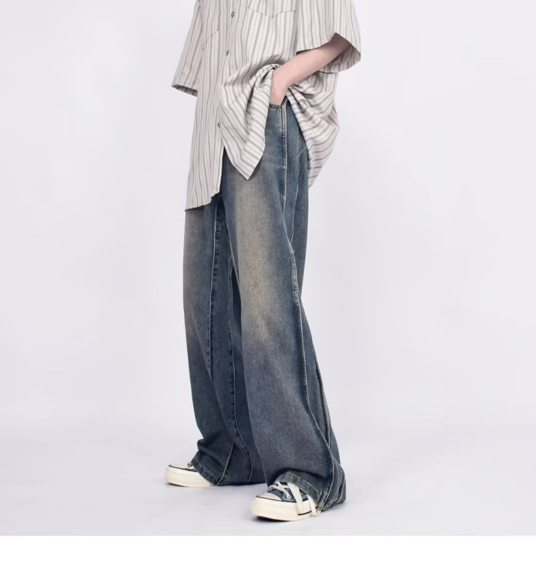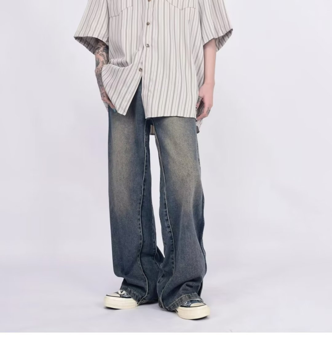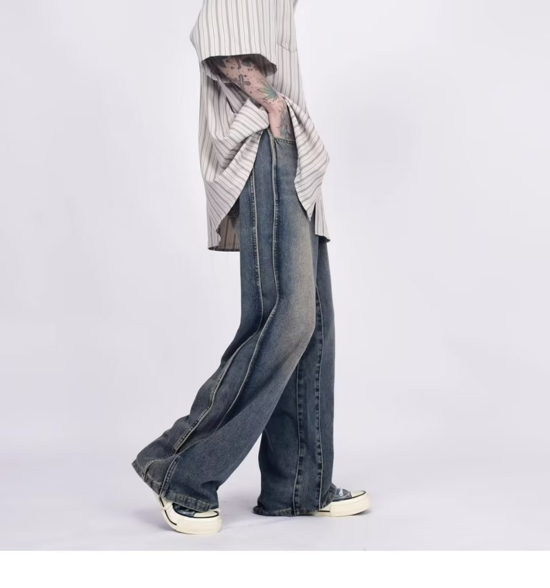 アメリカのレトロなサイドは水洗いのジーパンの男性のデザイン感をつなぎ合わせます。
