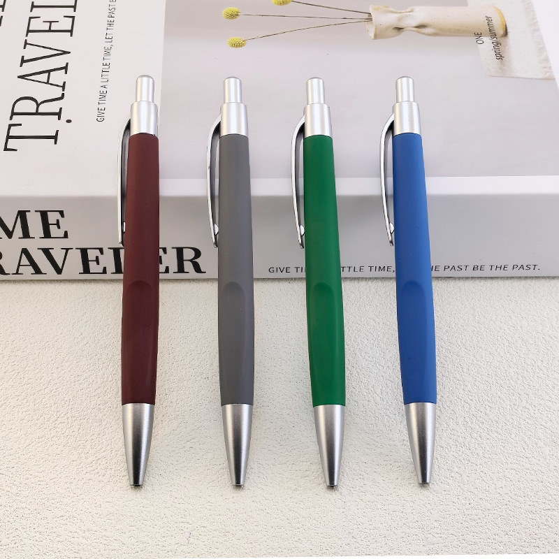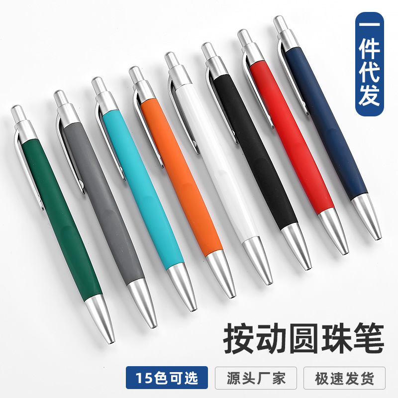 圆珠笔喷胶彩色笔杆按动商务办公笔油性高颜值外贸出口笔