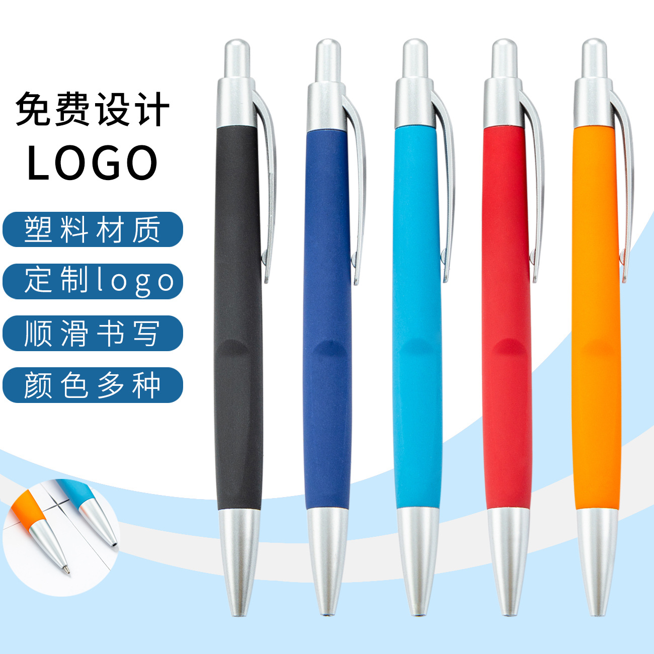 塑料喷胶按动笔可印LOGO外贸出口酒店笔圆珠笔商务推广告笔厂家