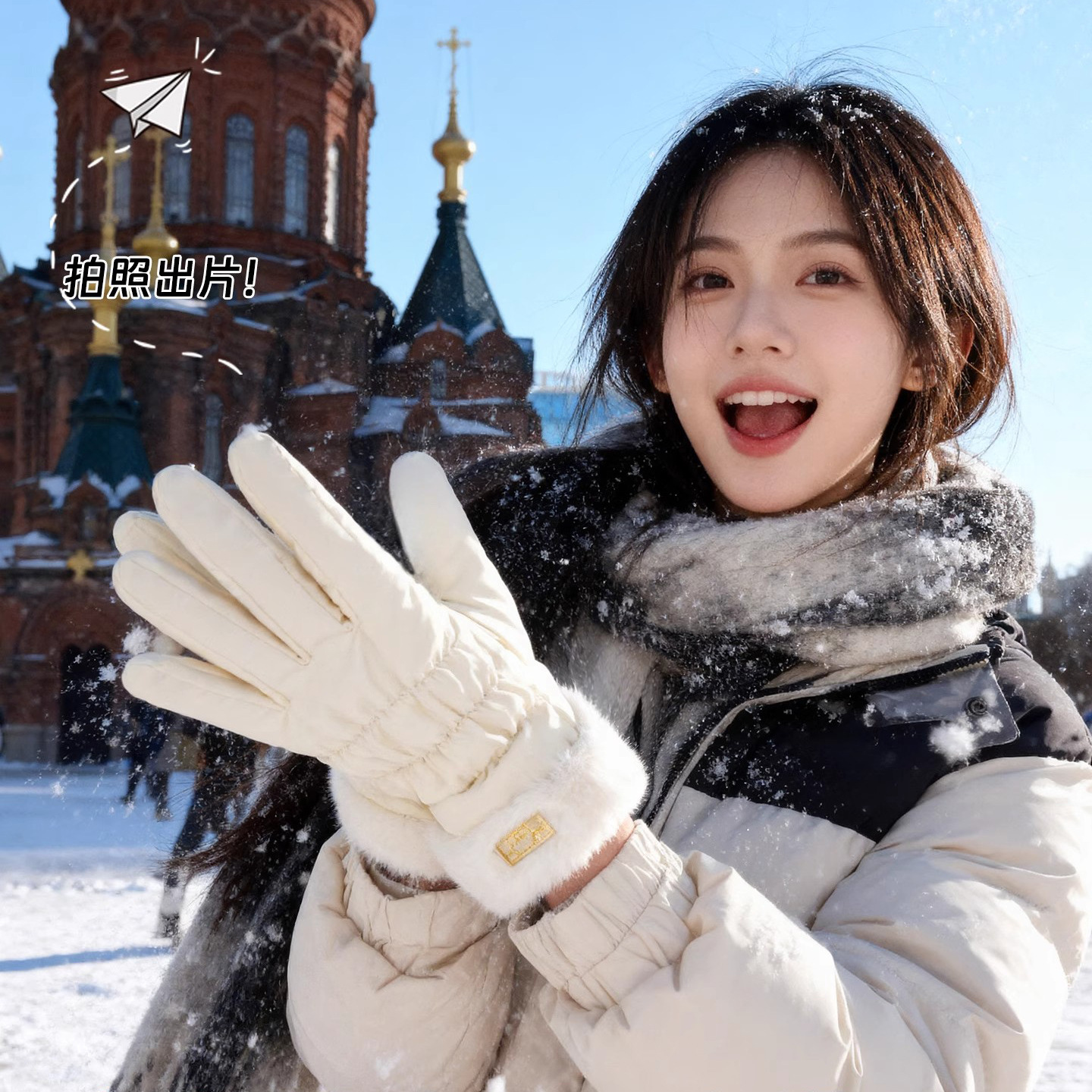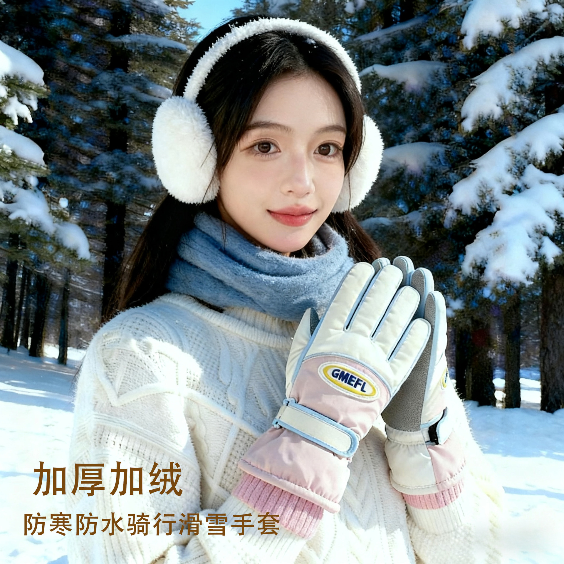 秋冬女款滑雪手套户外骑行防寒防滑加绒加厚保暖电动车可触屏手套