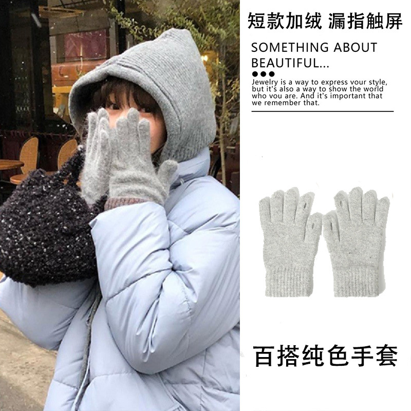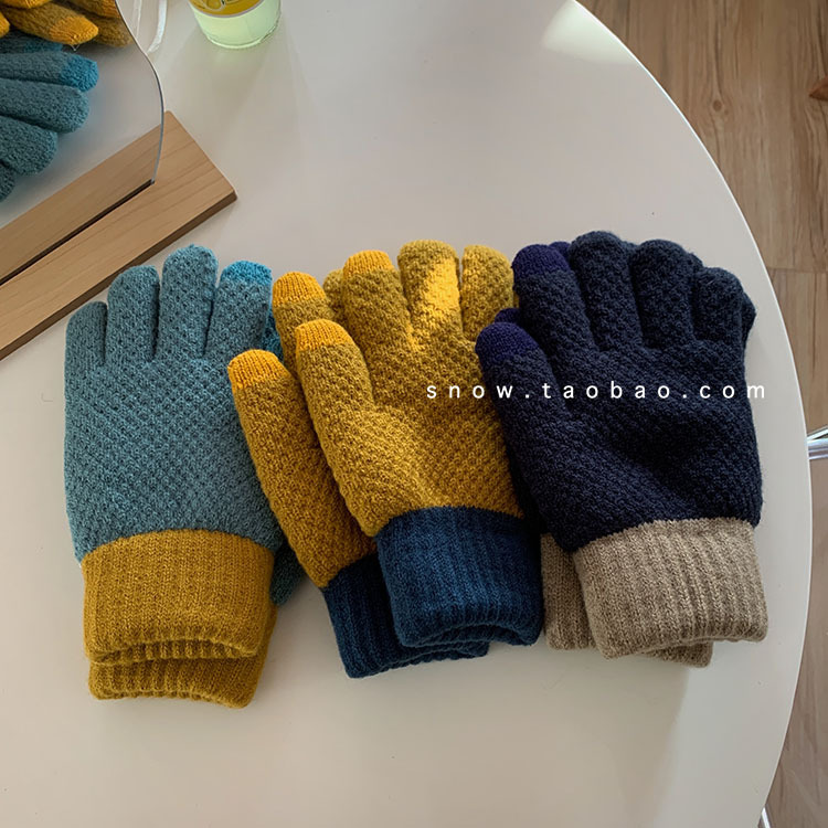 韓国ins冬ベルベット手袋女性保温防寒学生がニット毛糸タッチパネル手袋に乗る