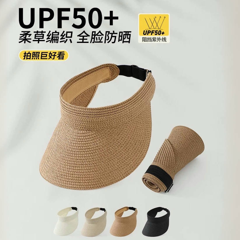 2025春夏クロスボーダー輸出細かい草編み空トップキャップ折りたたみ式帽子日焼け止め顔日よけ帽子日よけ帽子