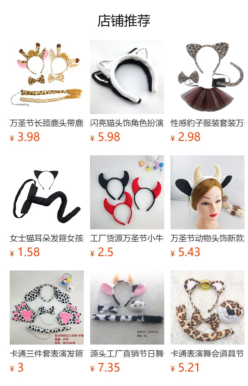 1六一表演卡通动物头箍毛绒头饰发箍兔子猫牛老虎羊兔子耳朵