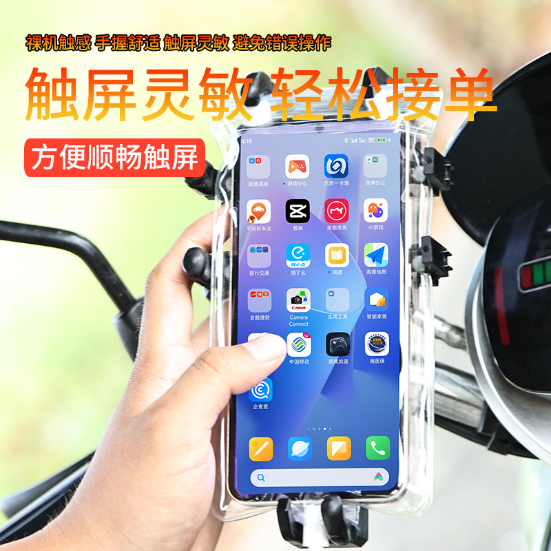 テイクアウトの騎手の携帯電話の防水カバーの現物専用の騎乗防豪雨スタンドのタッチパネルの充電防雨袋の卸売り