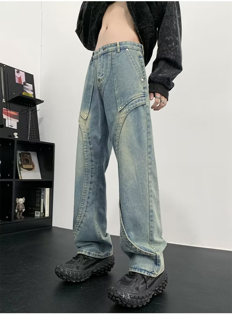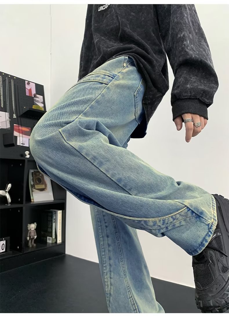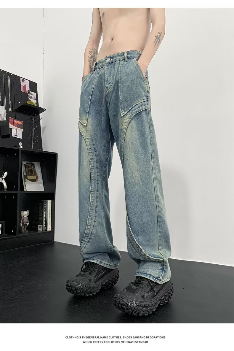 Cleanfit白い曲刀ジーパン男性式アメリカ式高街vibeズボンの腰が高くて痩せています。