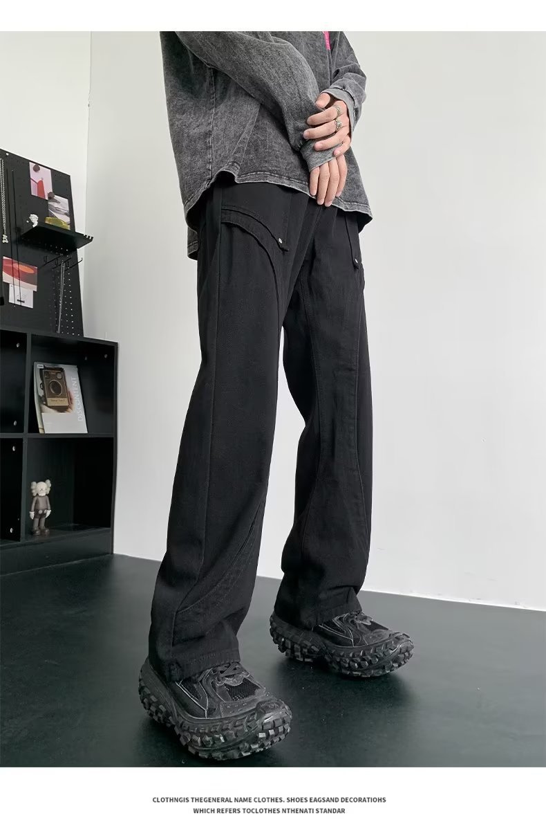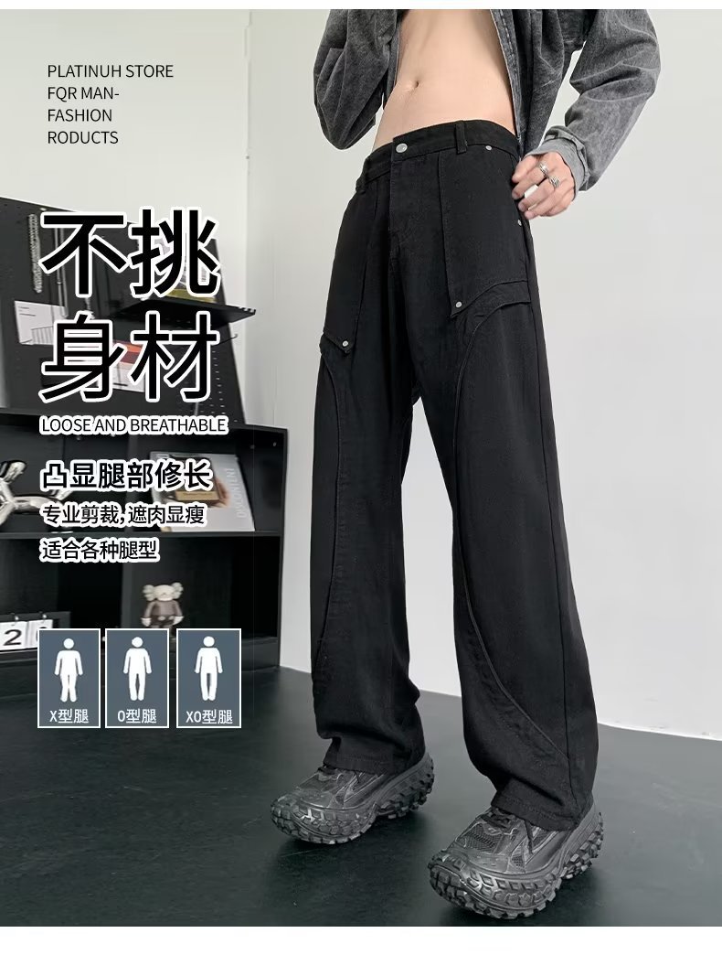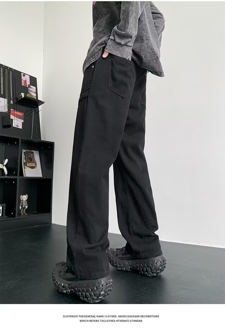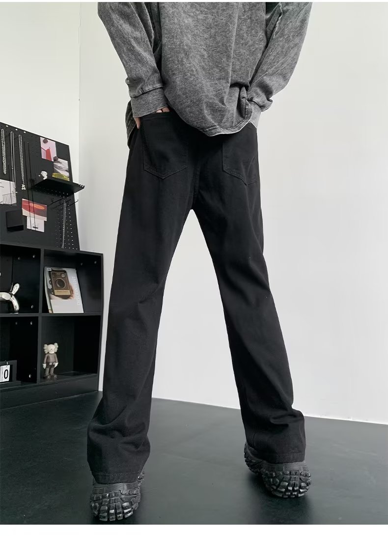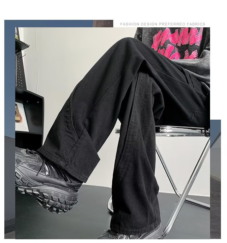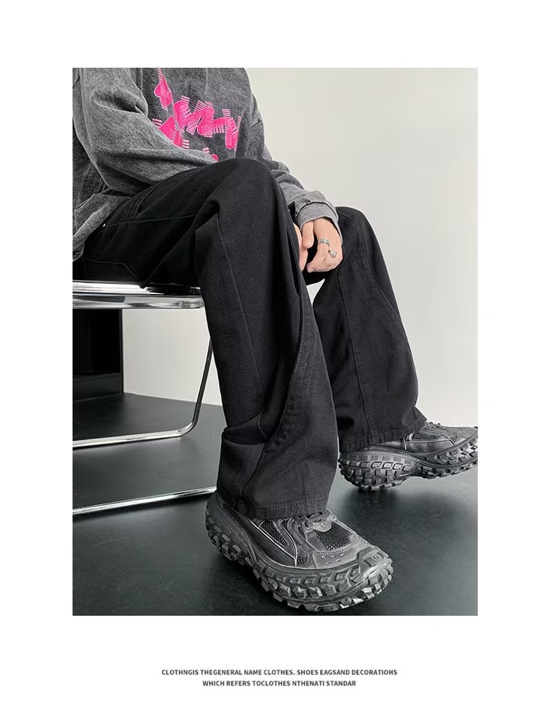 黒いジーパンの高い街のアメリカ式の夏の直筒のゆったりしている微ラッパのズボンのごろつきのかっこいい高級感のズボンの男性のタイプ
