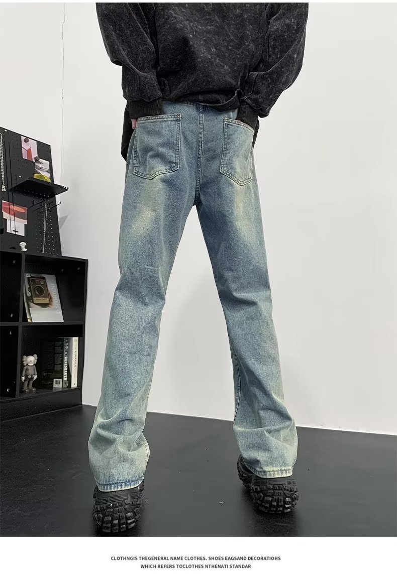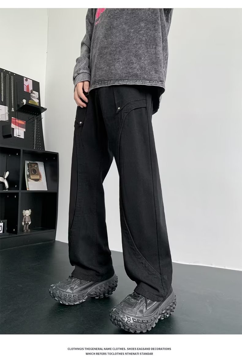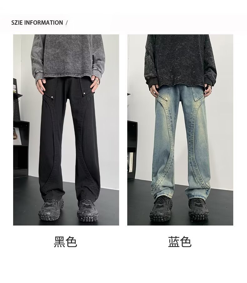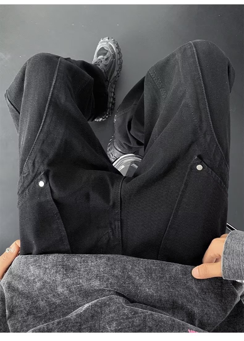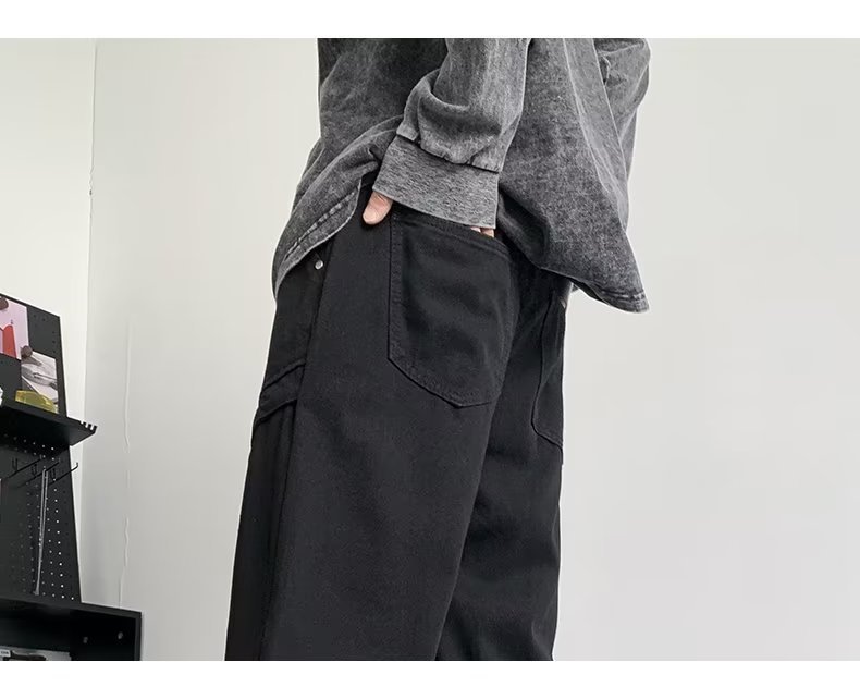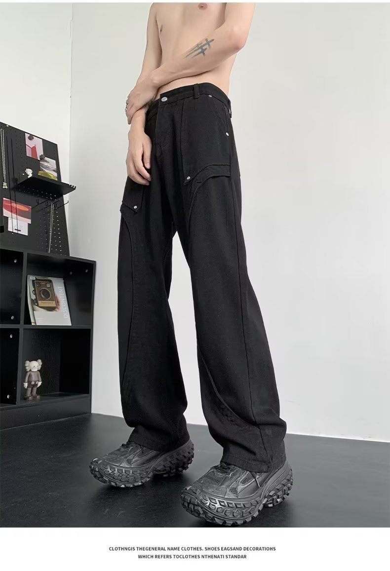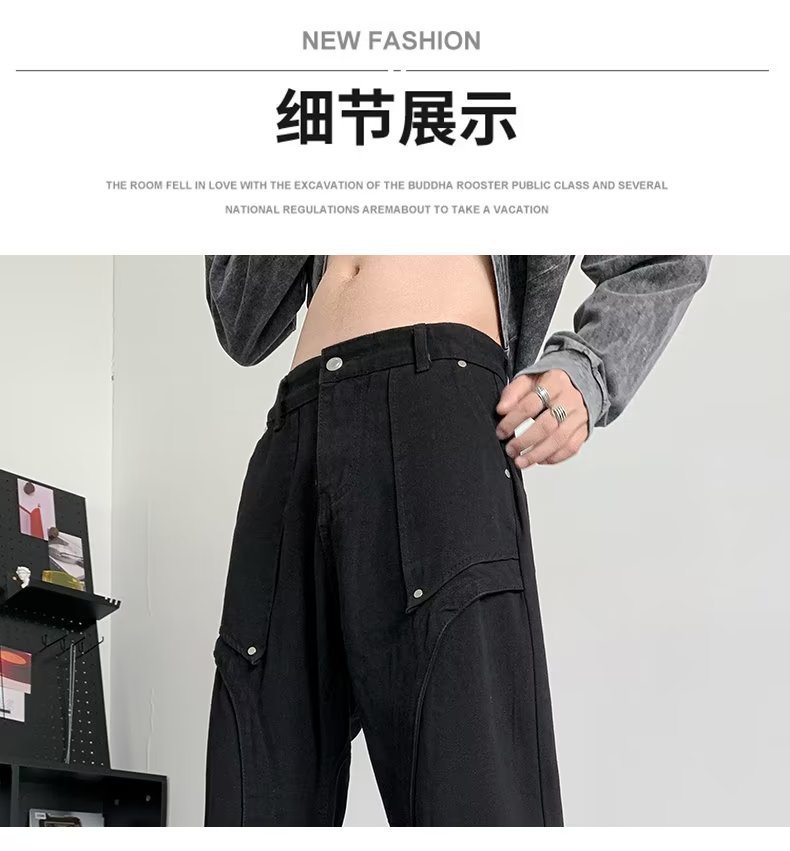 黒いジーパンの高い街のアメリカ式の夏の直筒のゆったりしている微ラッパのズボンのごろつきのかっこいい高級感のズボンの男性のタイプ