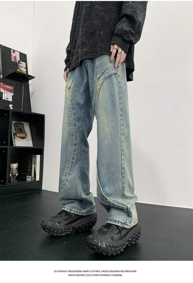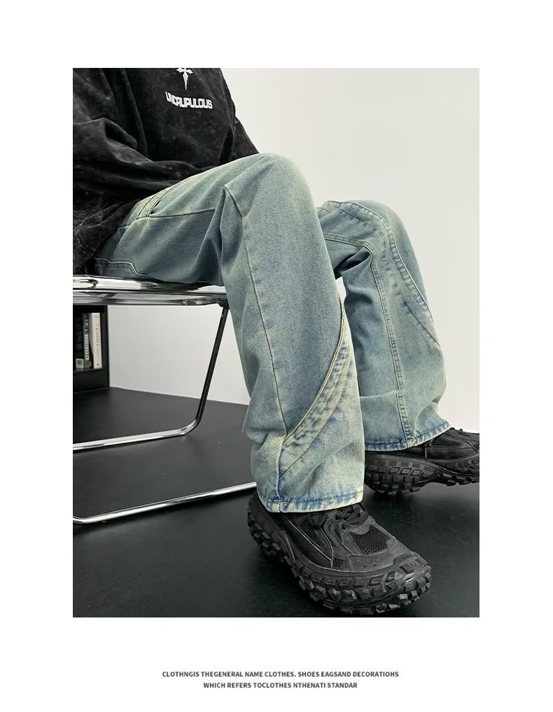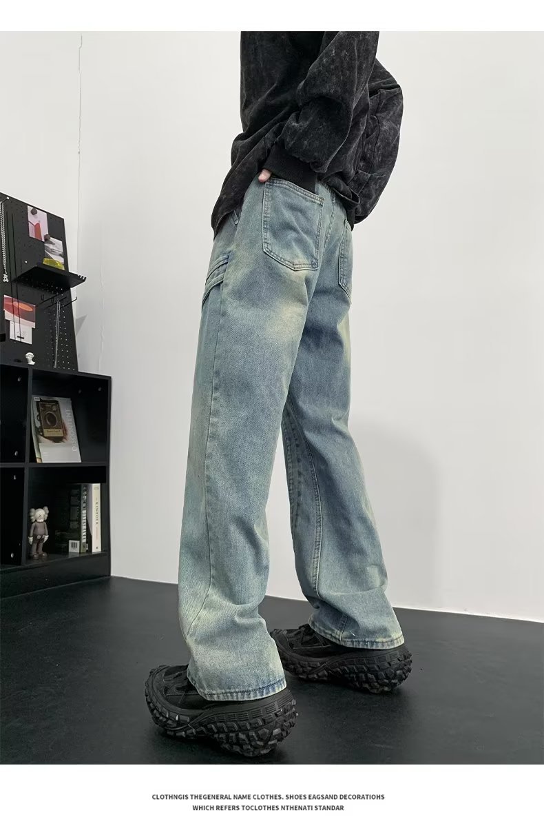 濃い灰色のvibeズボンの男性の春秋のタイプのアメリカの復古のジーパンは身を修めます。