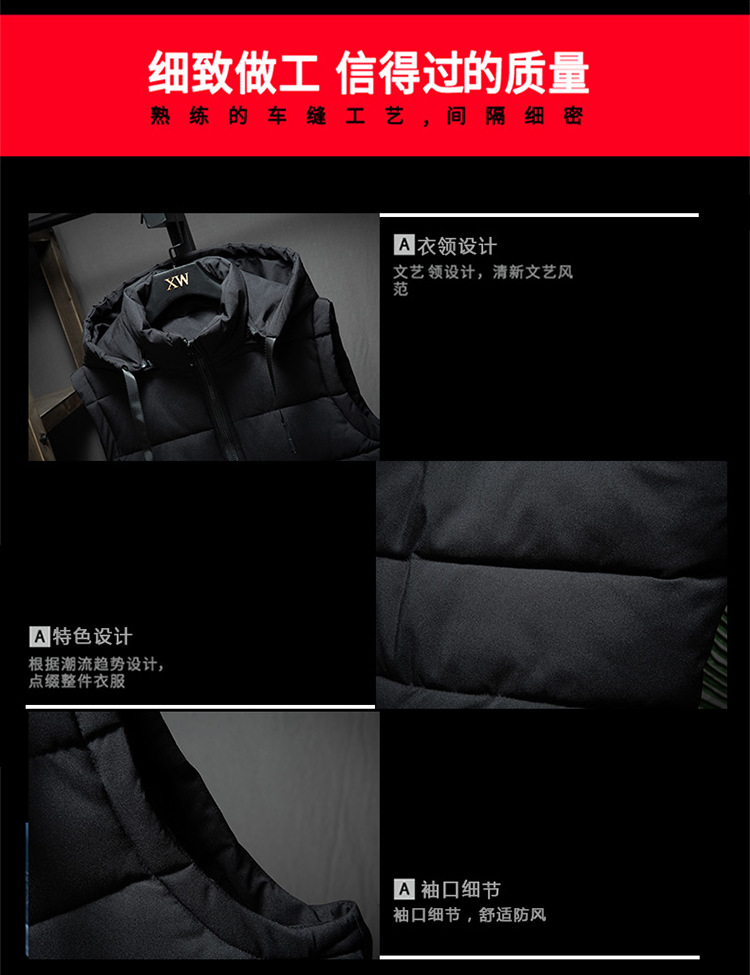 工装綿馬甲男性の新型秋冬保温カン肩袖なしベスト綿馬甲はロゴで対外貿易をしている