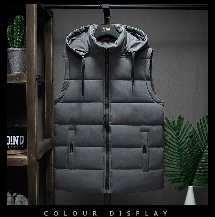 男性の馬甲は帽子をかぶって秋冬の越境貿易のカジュアルな男性の馬を厚くします。