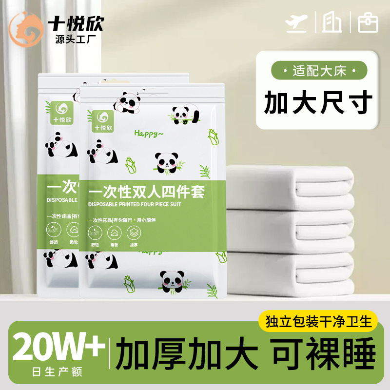 一次性四件套包邮旅游隔脏免洗灭菌加厚便携双人酒店床品四件套