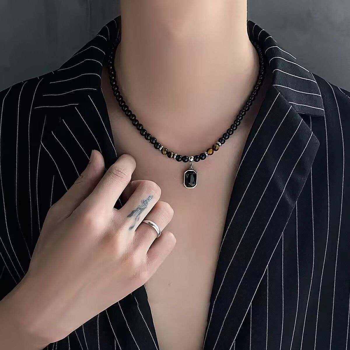 黒宝石ネックレス男潮オリジナルデザイン高級感軽豪華小衆気質女子アクセサリーinsヒップホップネックチェーン