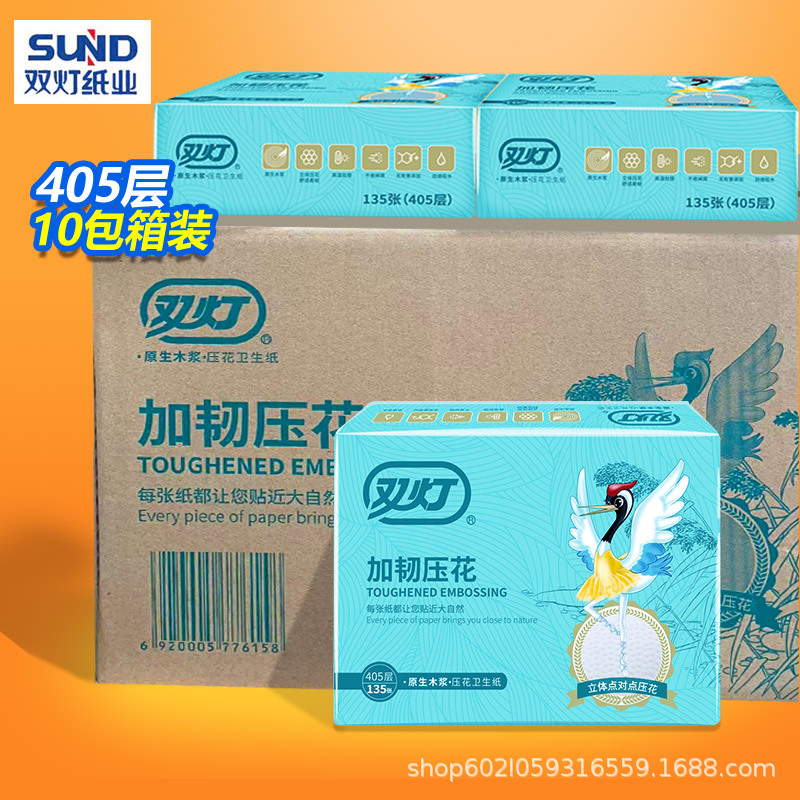 ダブルライトと強靭なエンボストイレットペーパー10パックのフルケースに手を拭く紙405層家庭用白色平板トイレットペーパー