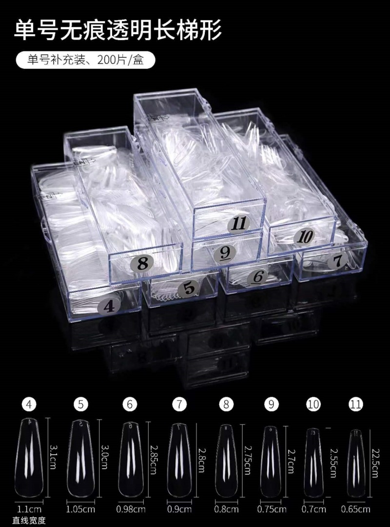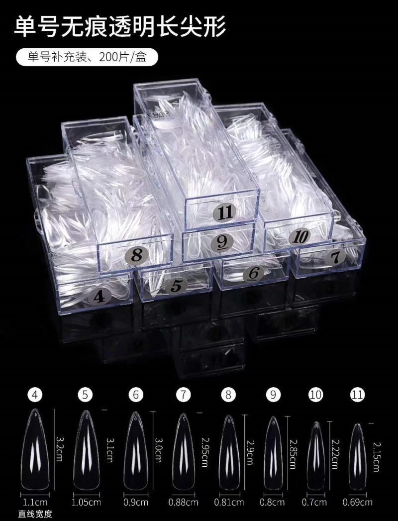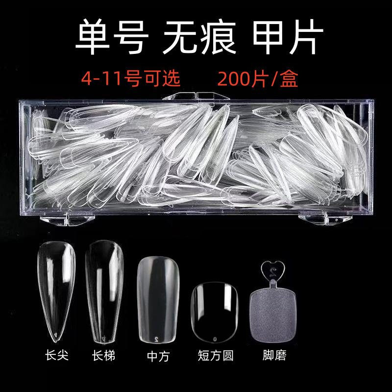 ネイルアート超薄型無刻磨単号新型無痕着用偽爪片アーモンド透明全貼り卸売りnail