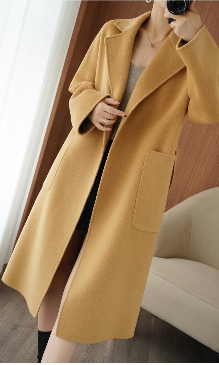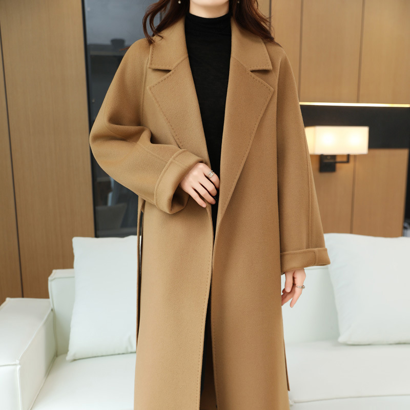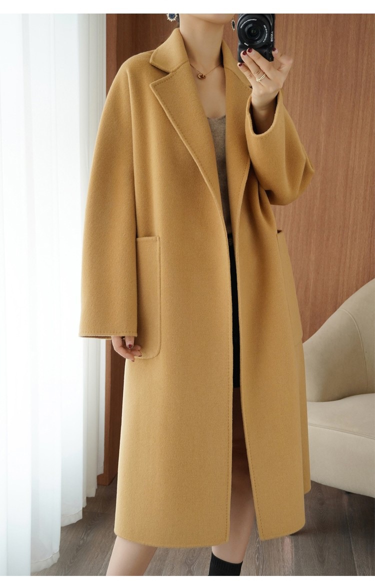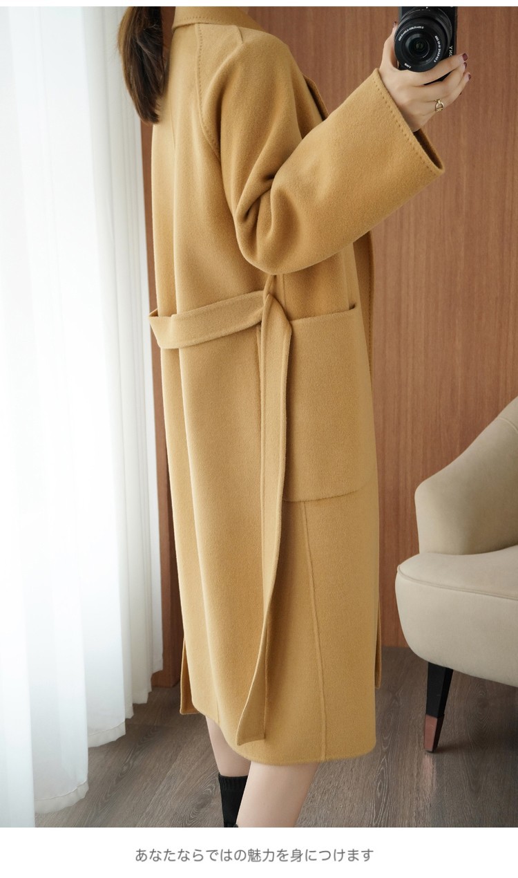 オールウール キャメルカラー 両面ウールコート 冬の人気商品 ミドル丈ウールコート 2025年新作 韓国風コート