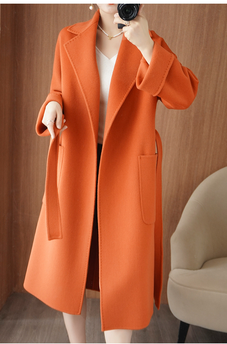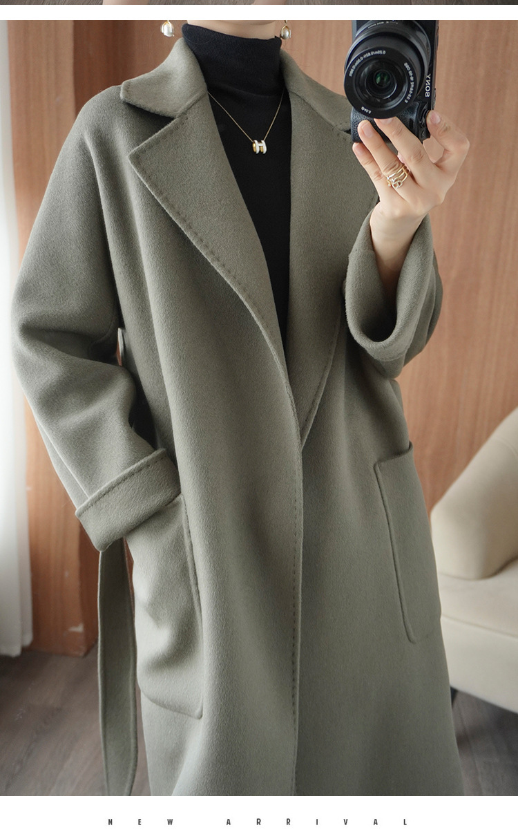 秋冬100% 純カシミヤコート23新型ストラップ純色スーツ襟気質通勤風カシミヤコート