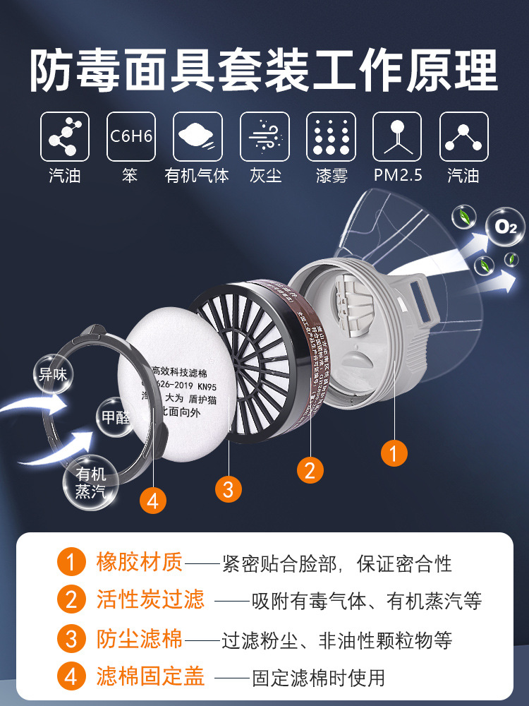 防毒活性炭化学品防護化学工場化学実験室専用マスク有毒ガス化学工業ガス