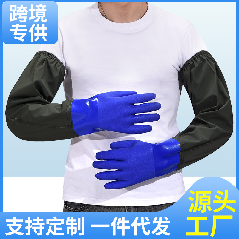 防水加工を施したゴム製長手袋、裏起毛、耐摩耗性、産業用保護手袋、厚手、家事や作業に最適、耐久性あり